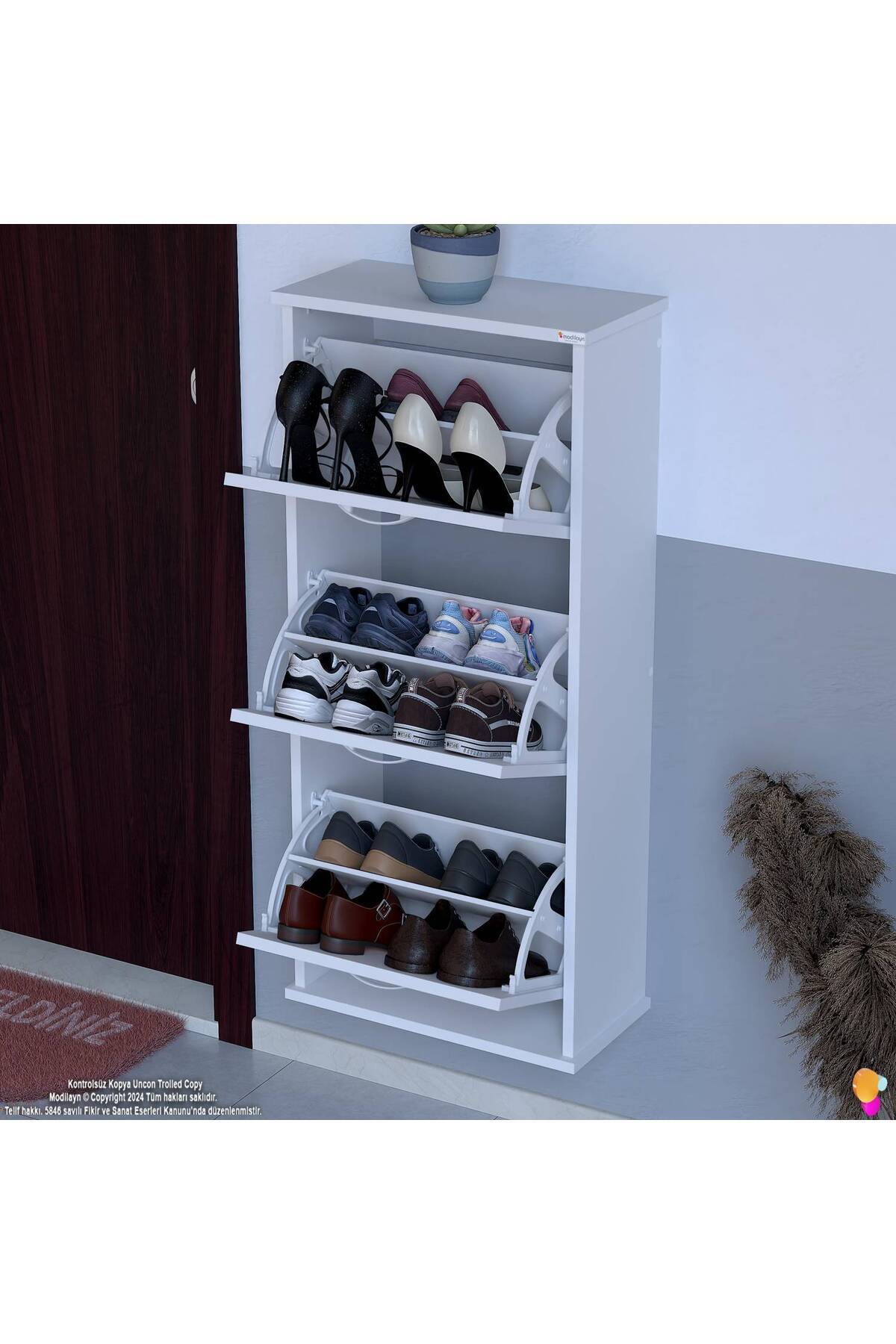 Modilayn VARBİ Asma Kapı Önü 52x115x25,5 cm’ lik 3 Düşer Kapak 6 Göz Bölmeli Ayakkabılık