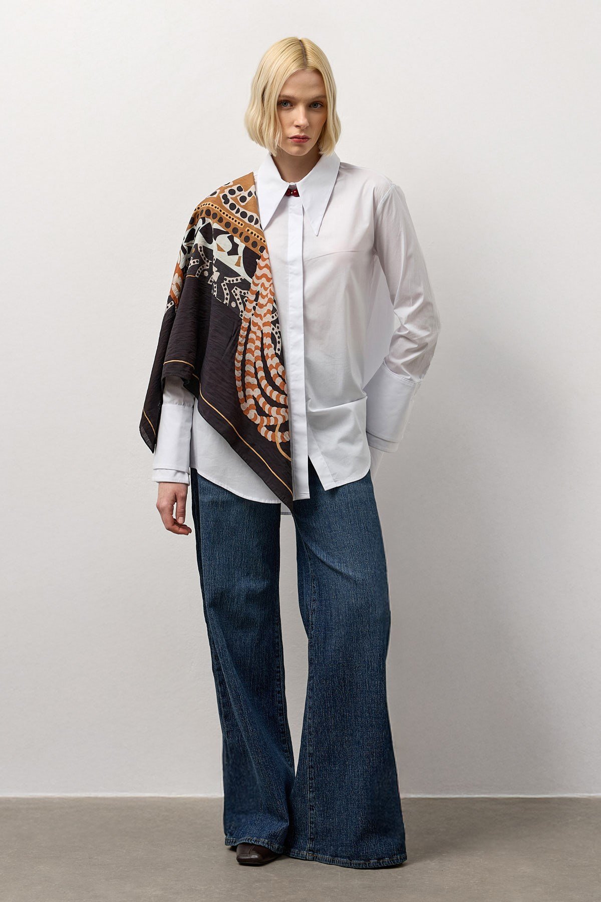 Molene Beyaz Çift Manşetli Regular Gömlek