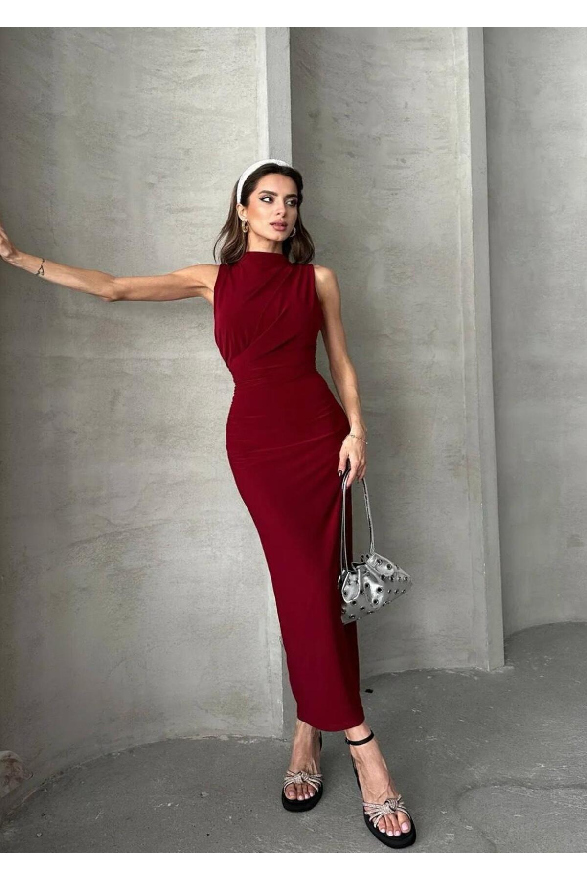 Mon Astre Sıfır Kol Arkadan Yırtmaçlı Drapeli Elbise Özellikleri