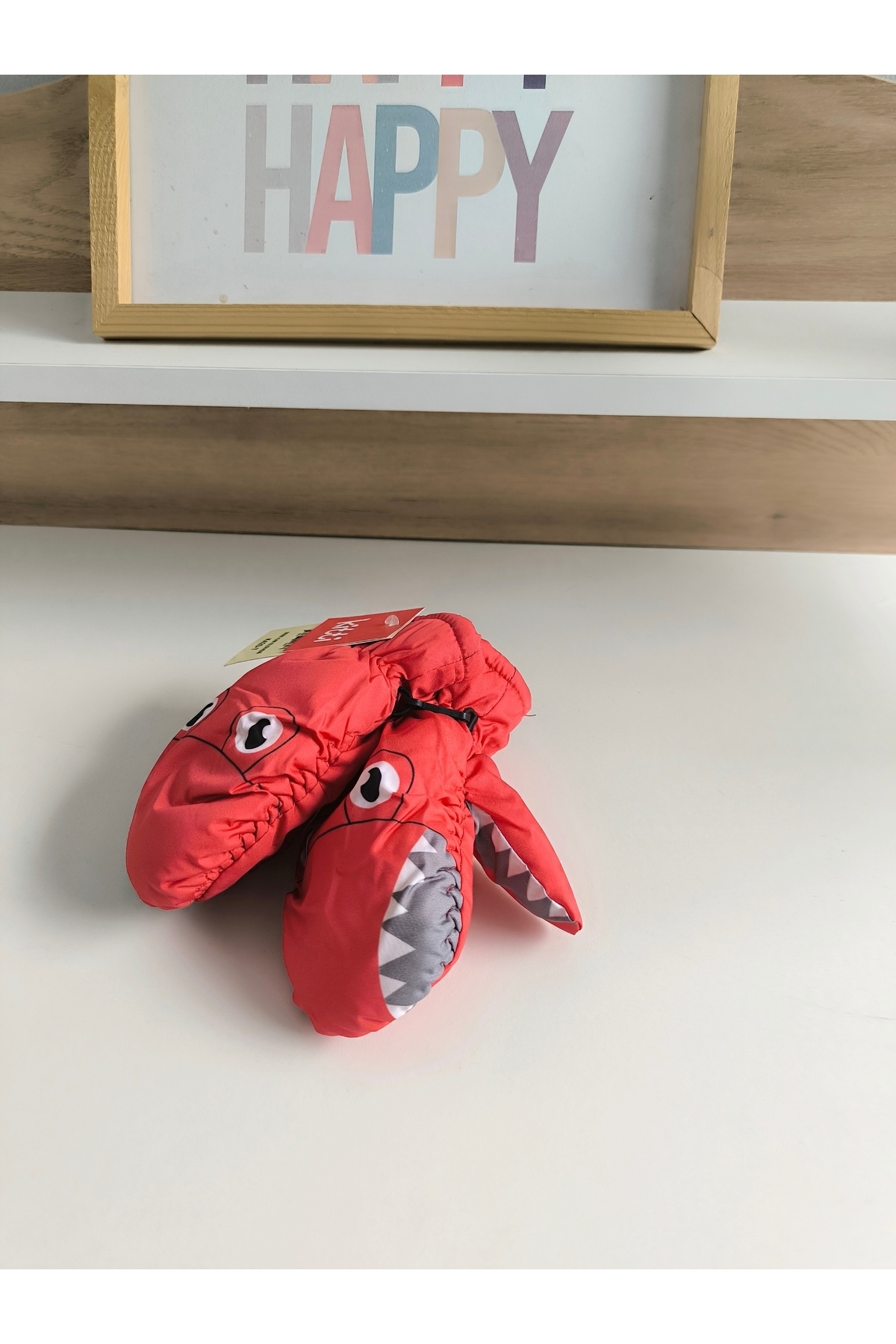 Monkabox Kırmızı tek parmaklı çocuk kar eldiveni su geçirmez 3-6 yaş