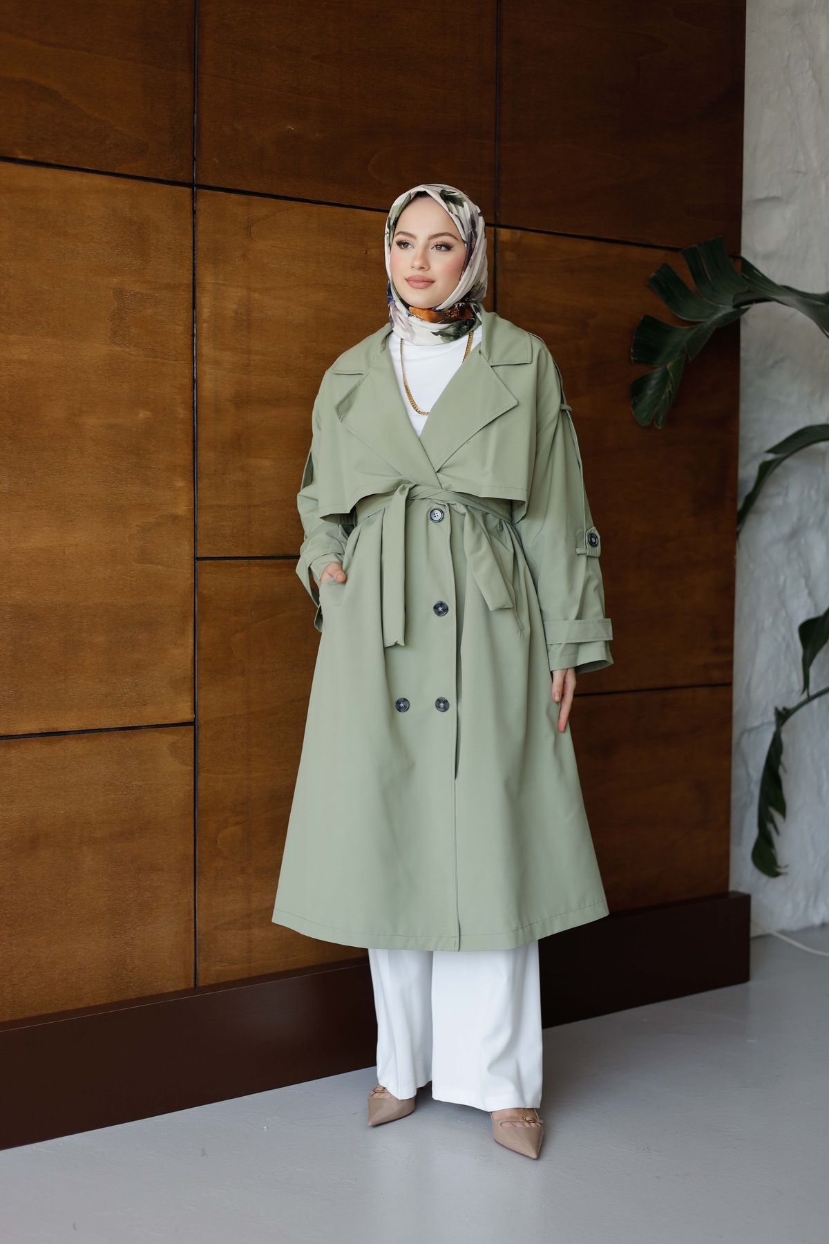 MOONSC OVERSİZE TRENÇKOT - çağla yeşili