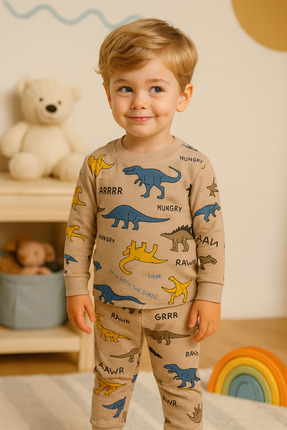 Defacto Erkek Bebek Pijama Takımı Yıldız Desenli Uzun Kollu Penye Üst Beli Lastikli Uzun Alt D6809A5NS