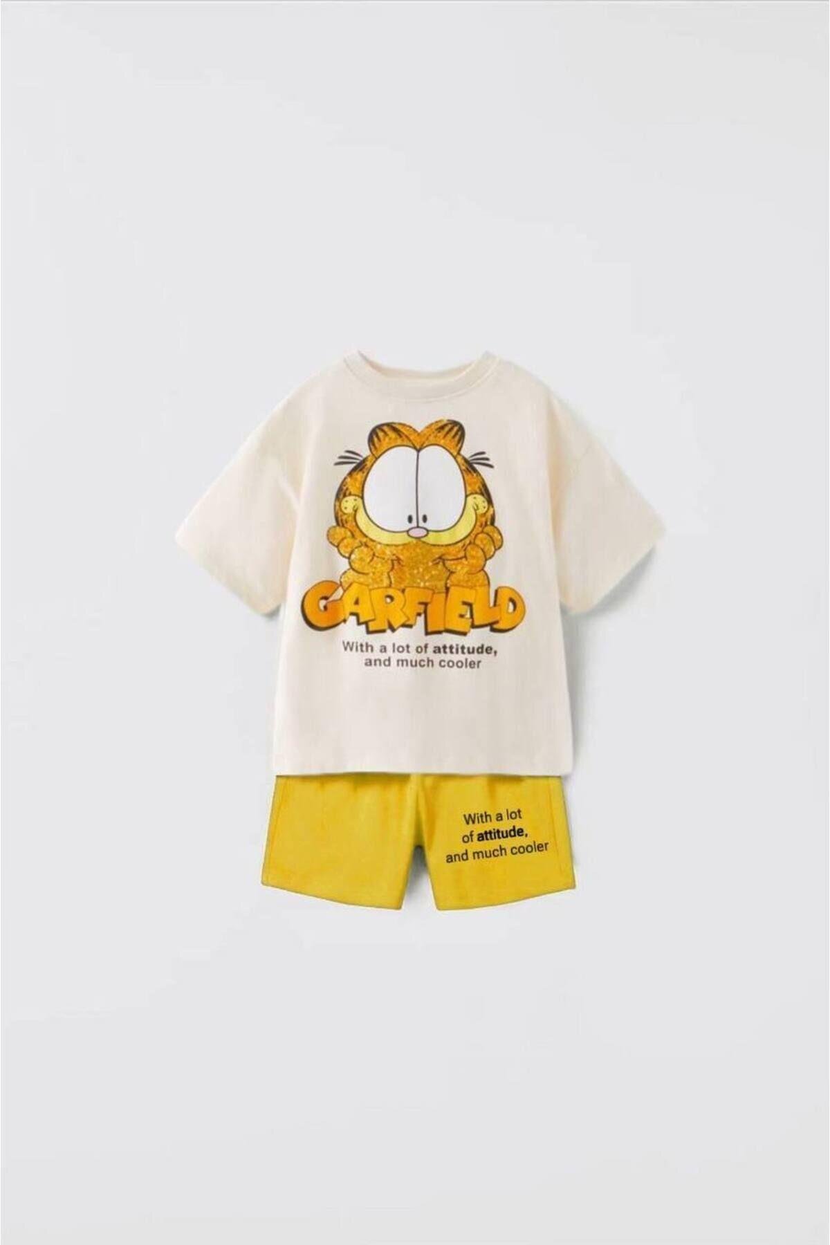 Morpembej Garfield Şortlu Takım Sari
