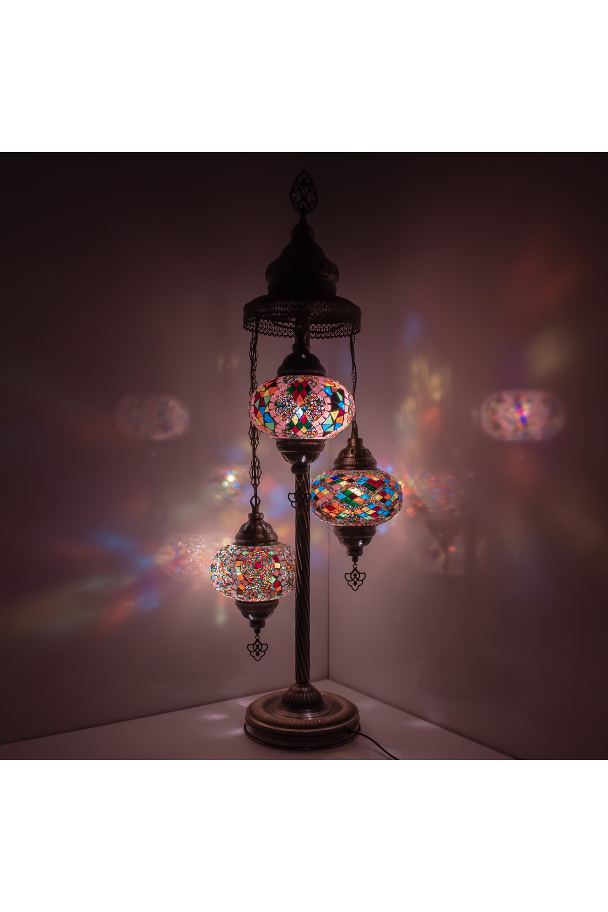 mosland home Osmanlı Fas El Yapımı Mozaik Lambader, Eskitme Ayaklı Köşe Lambası
