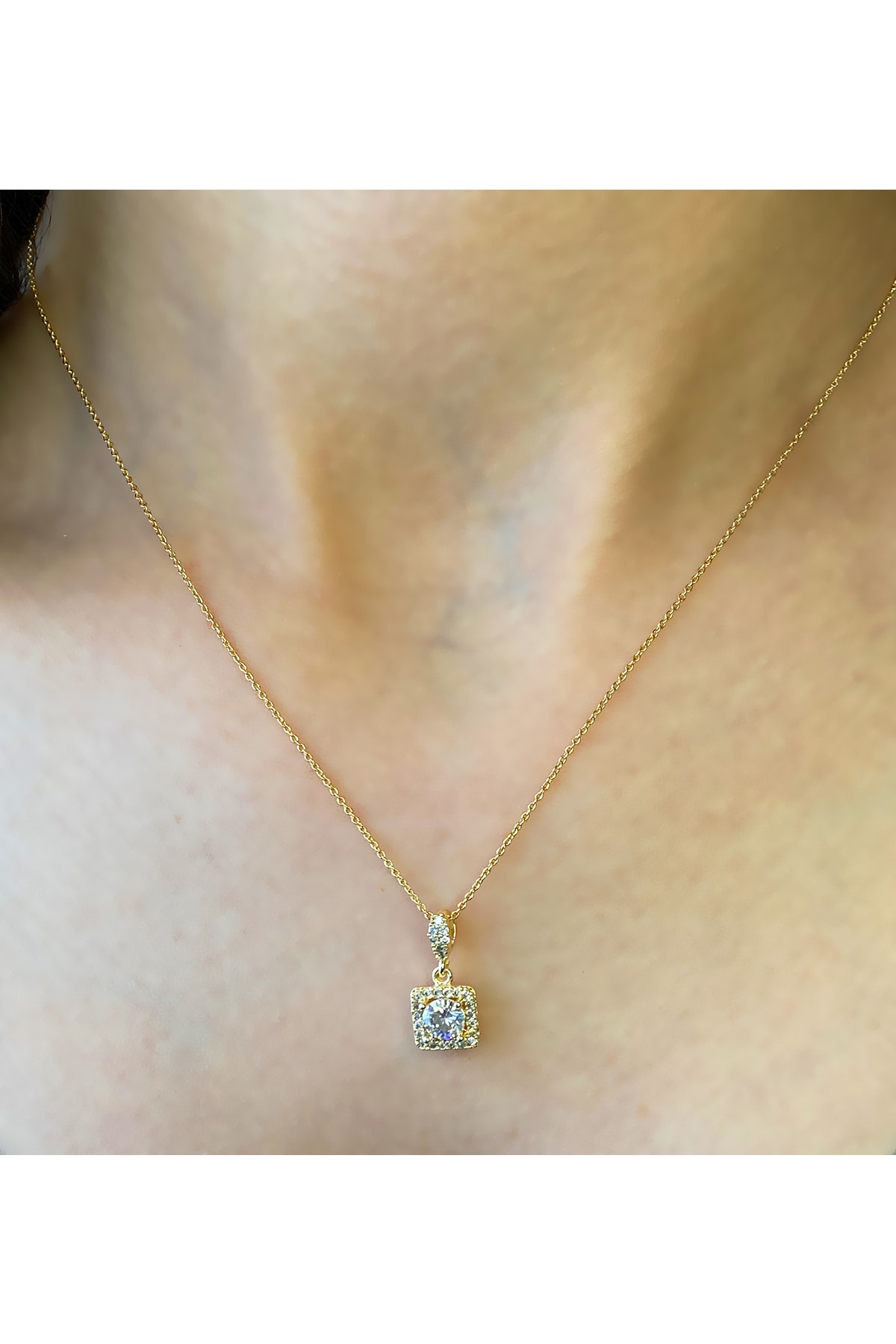 MOSSMOUR Zirkon Taşlı 14k Altın Kaplama Zarif Baget Tek Taş Luxury Kolye