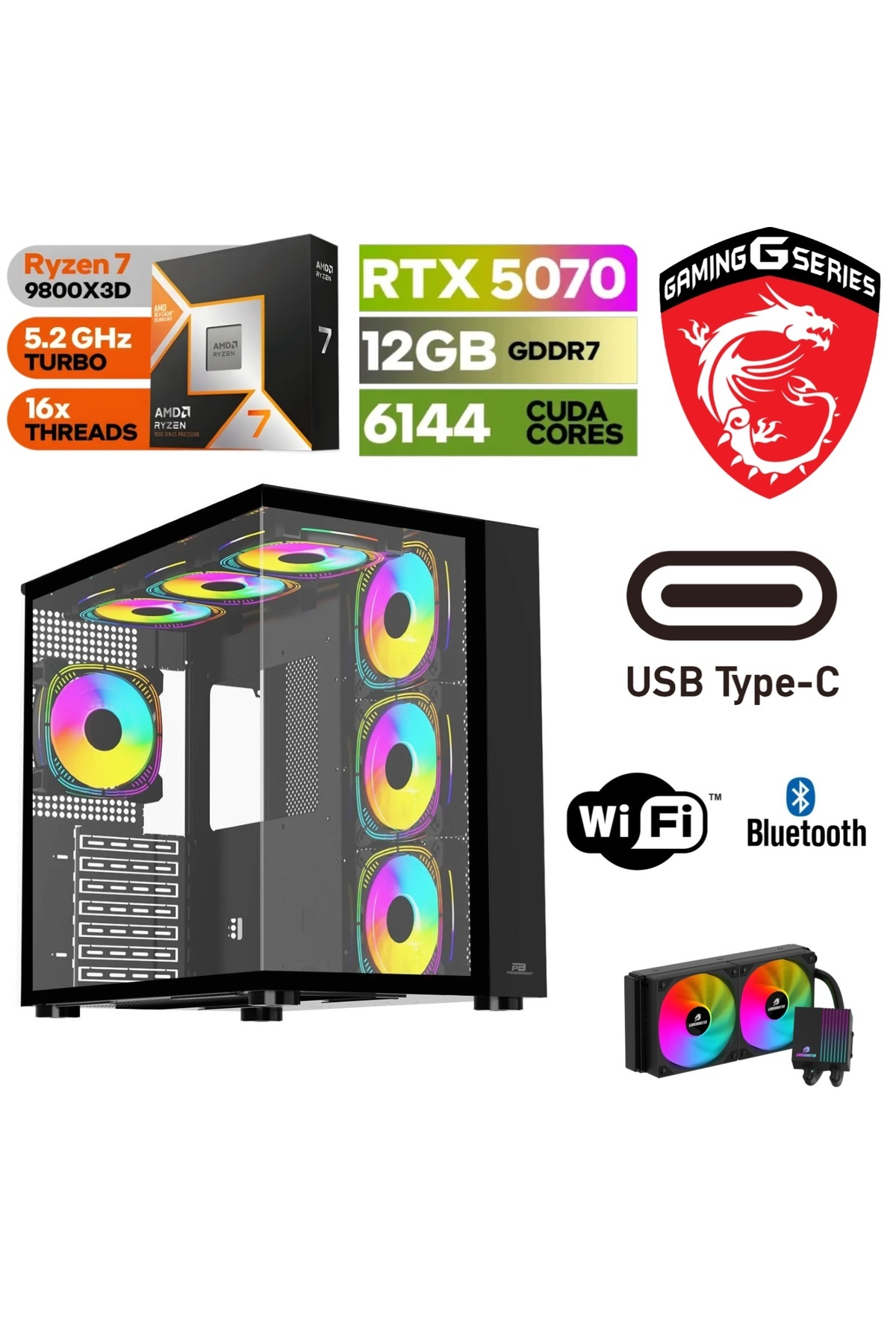 MSI GAMİNG DDR5-RTX 5070 12GB-RYZEN 7 9800X3D-32GB DDR5 RAM-1 TB M.2 SSD-SIVI SOGUTMALI-WİN11PRO