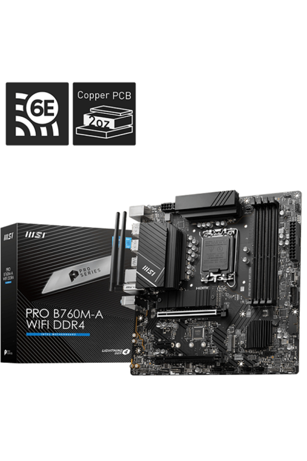 MSI Pro B760m-a Wıfı Ddr4 Intel B760 Soket 1700 Ddr4 5333(OC)mhz Matx Gaming (OYUNCU) Anakart