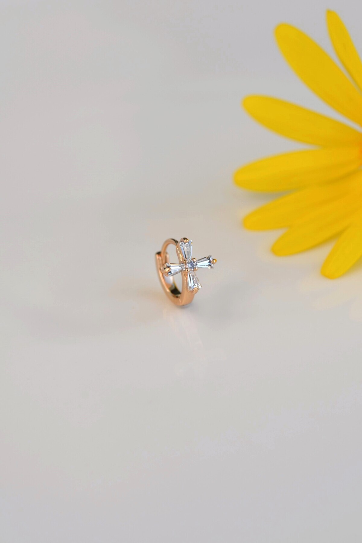 Mu Minamu Zirkon Taşlı Mini Cross Tragus Piercing Helix Kıkırdak Küpe