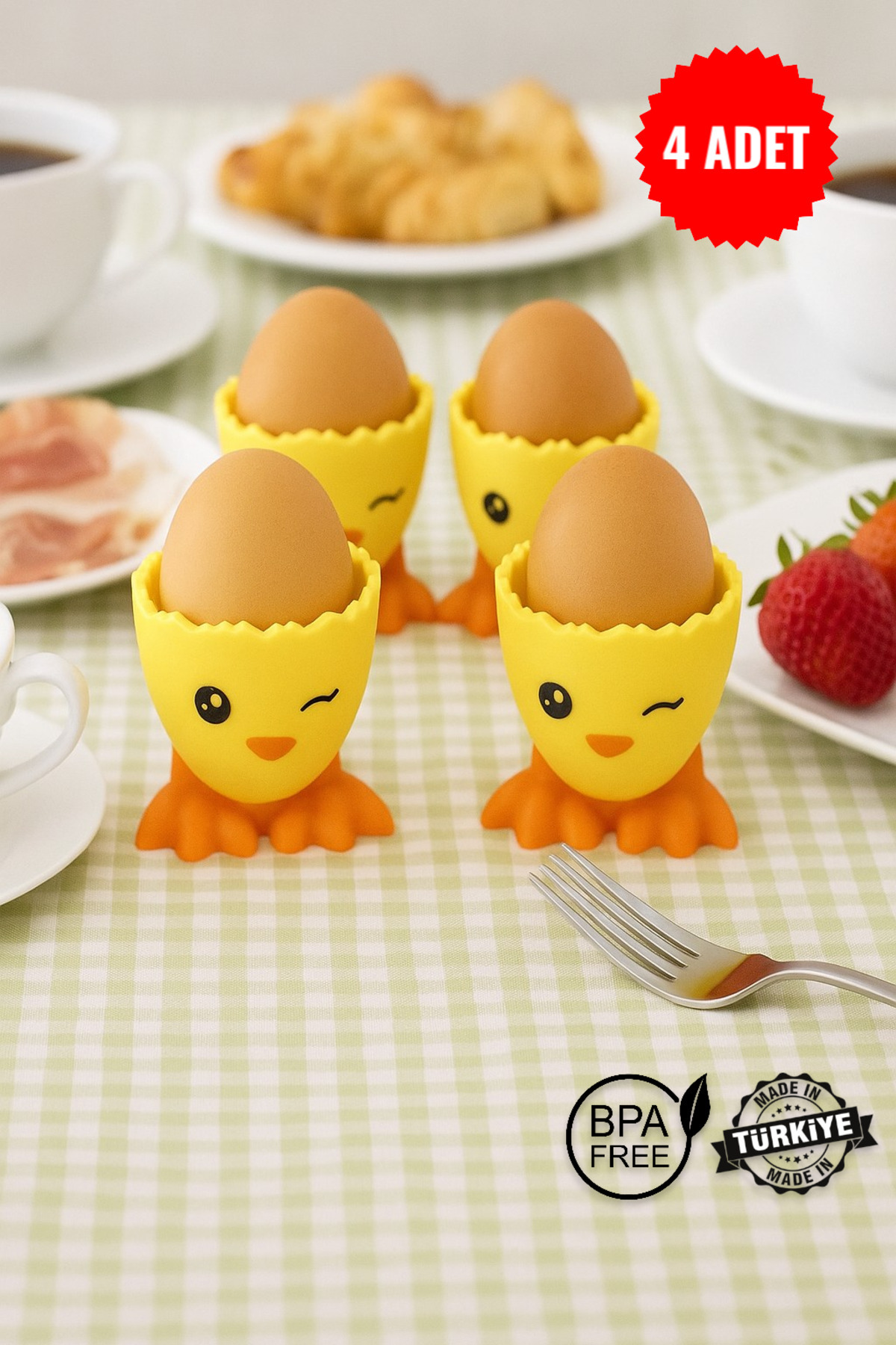 MUF HOME Sevimli Tasarımlı Civciv Yumurtalık - Kahvaltı Masasına Neşe Katar BPA İçermez - 4 Adet