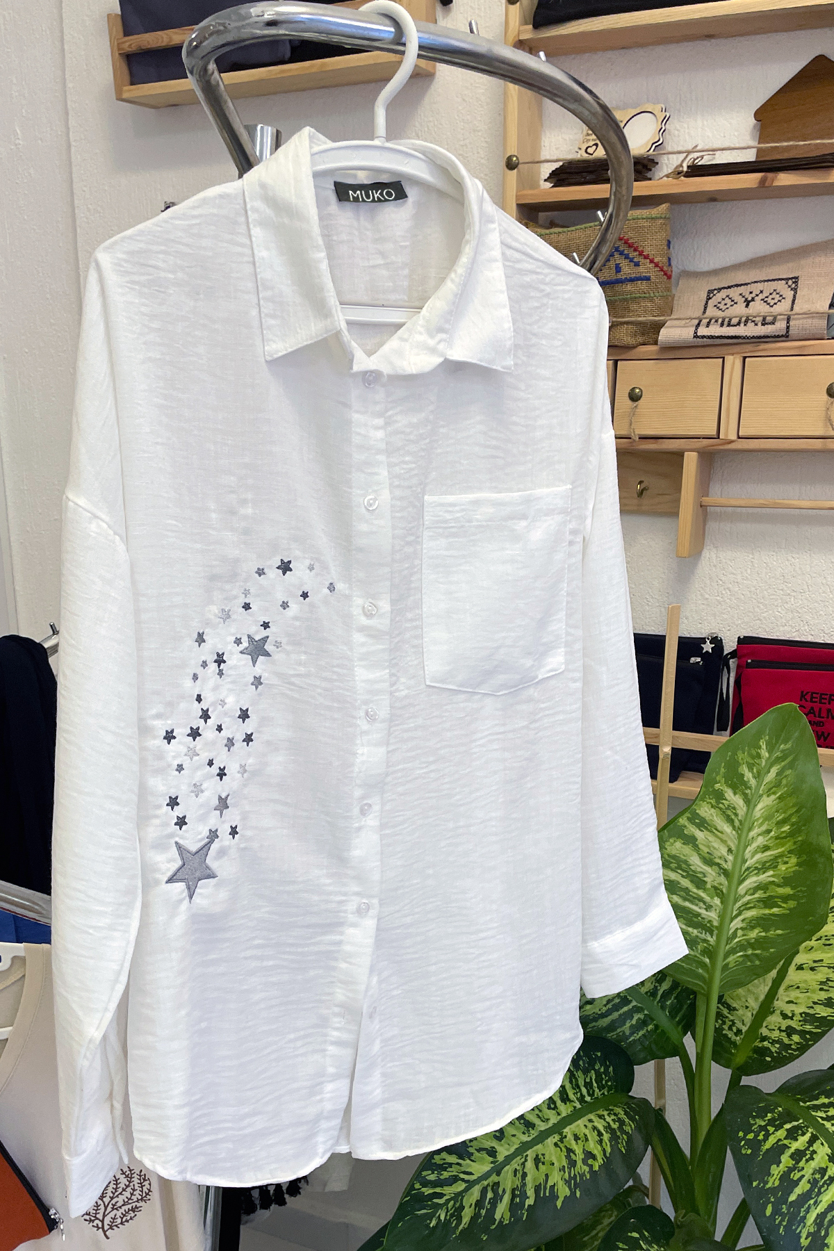 muko Nakış İşlemeli - Oversize - Keten Gömlek