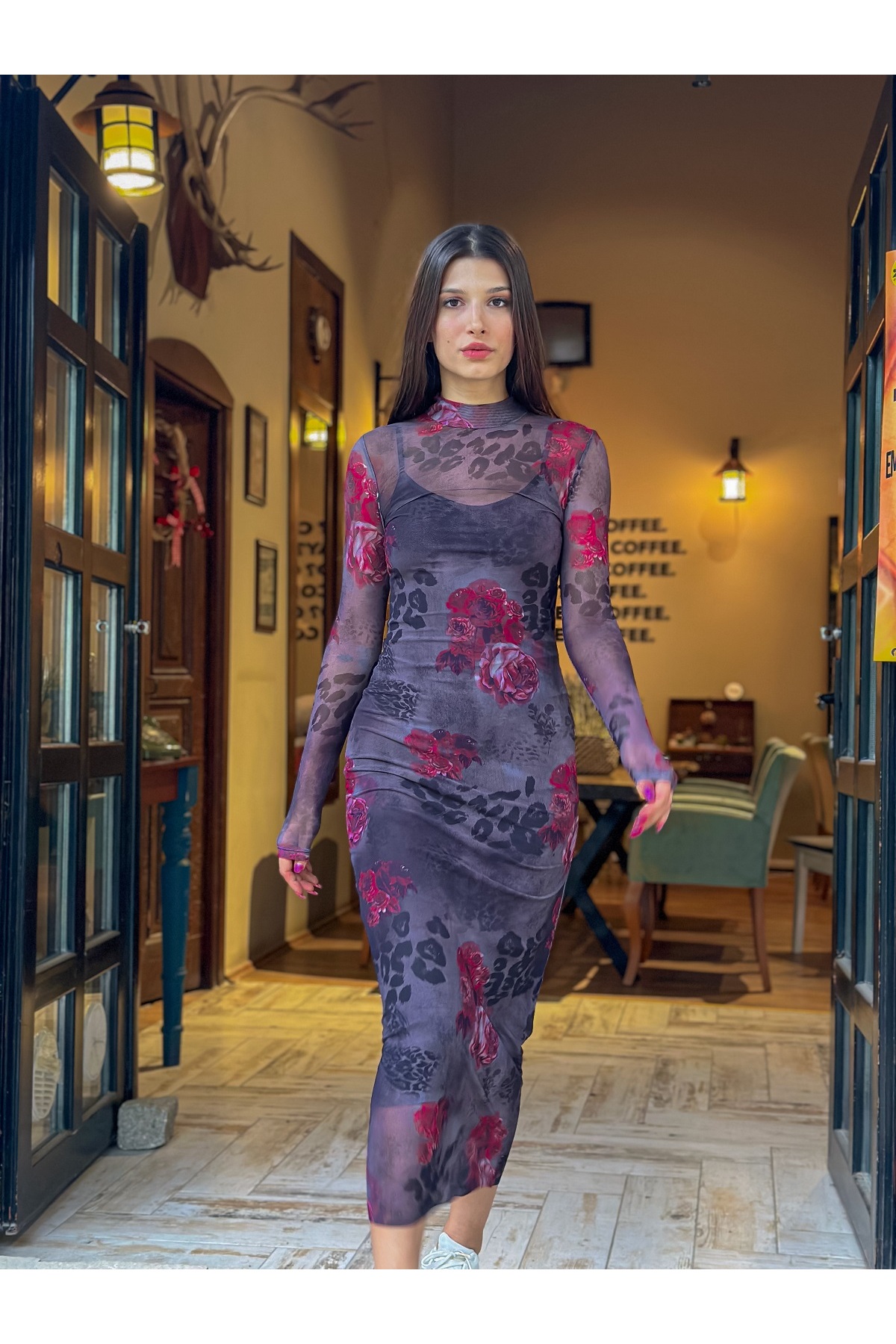 MY DEPO Kadın Midi Boy Çiçek Desenli 2'li Tül Elbise Özellikleri