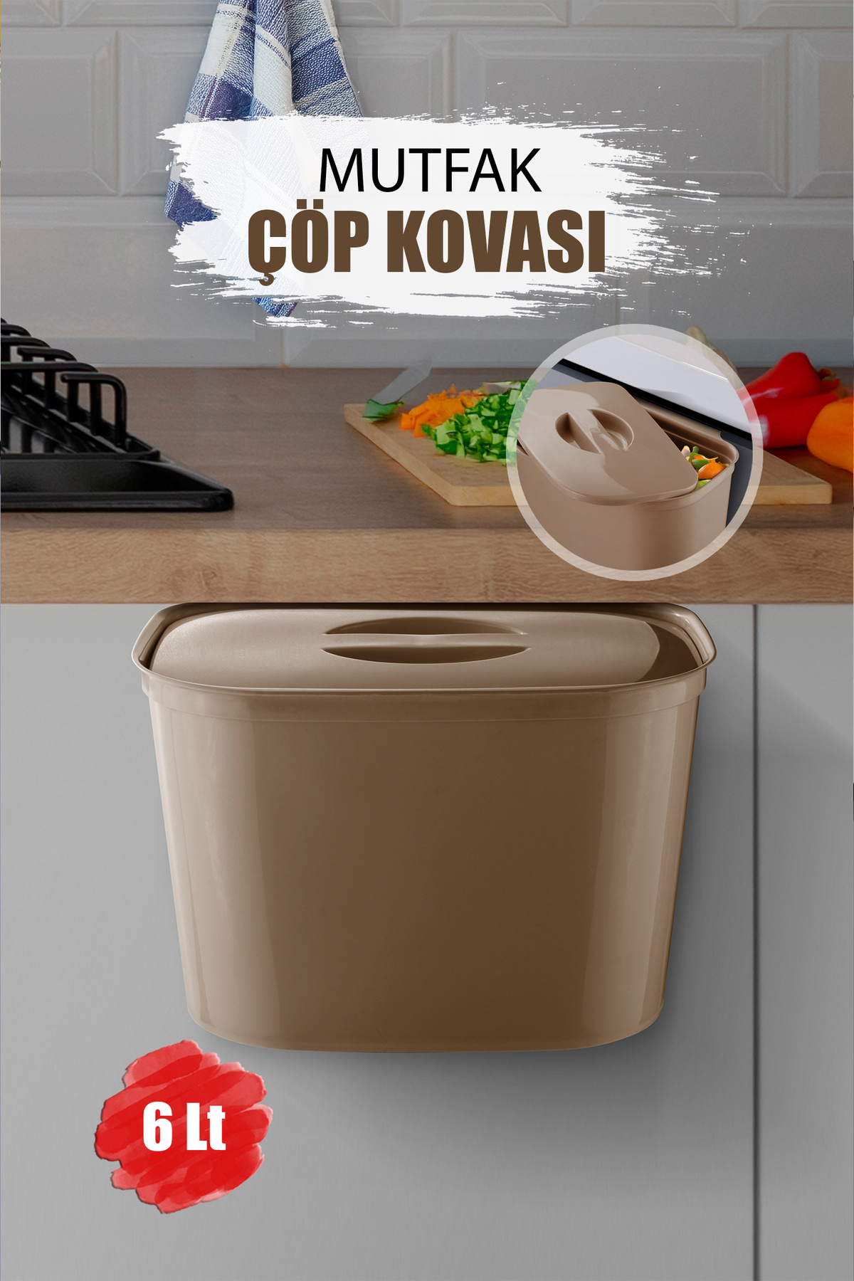 MYBOX Askılı Fonksiyonel Çöp Kutusu 6L - Dolap Kapağına Asılabilir Pratik Tezgah Altı Çöp Kovası Kahve