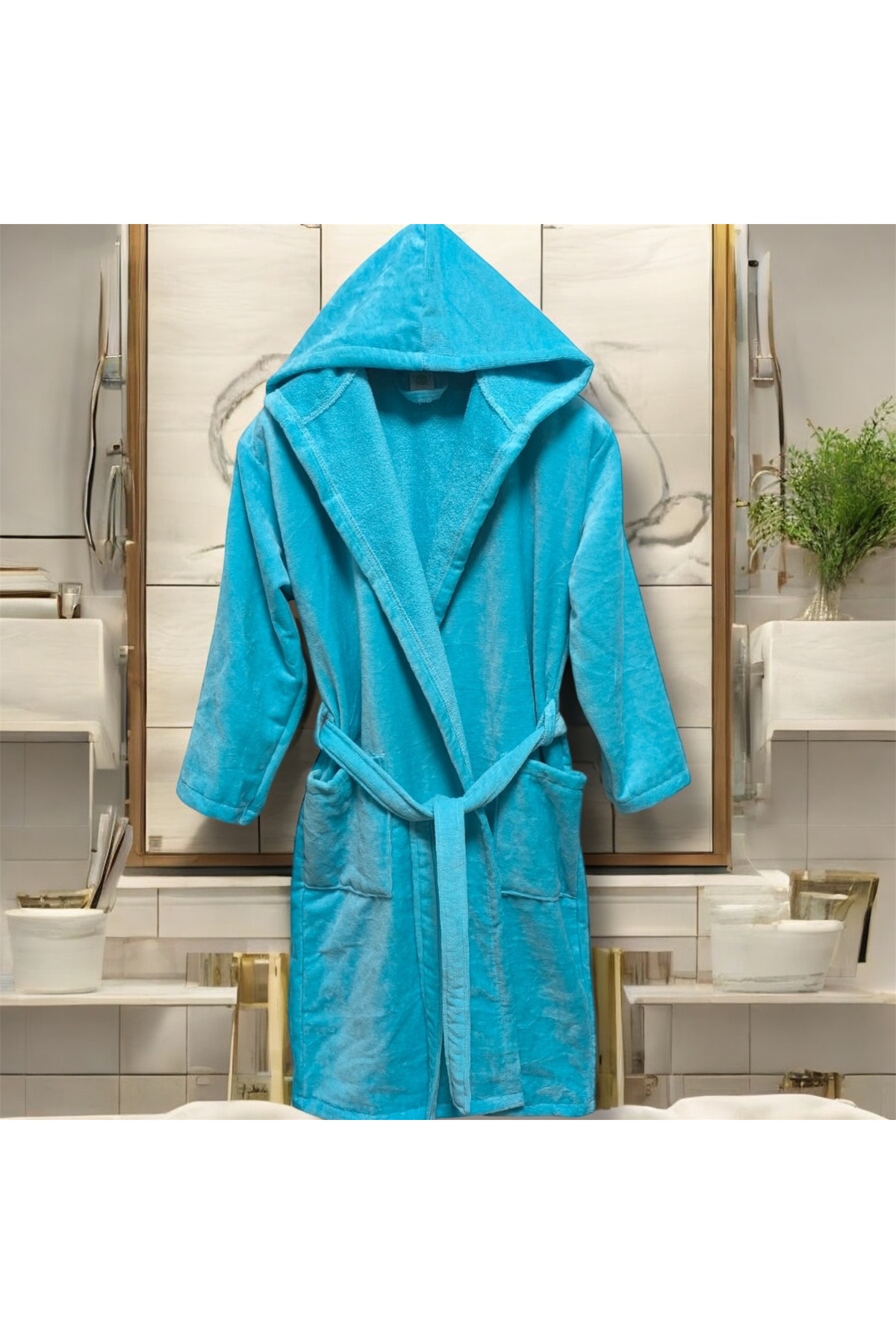 MYSOFTHOME Bornoz Kadife Kapüşonlu %100 Pamuklu