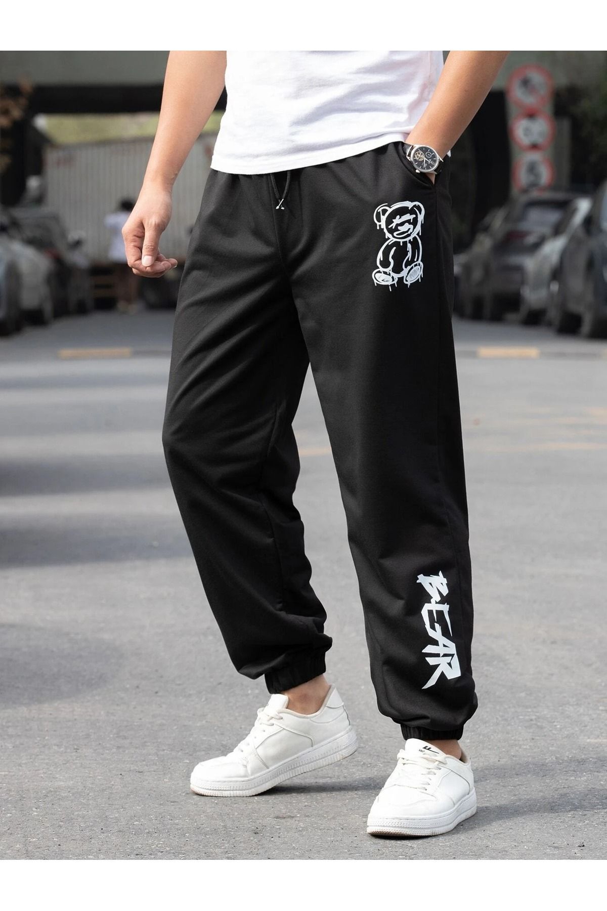 Mythologie Bear Eşofman Altı Jogger - Siyah Baskılı Lastik Paça Yüksek Bel Özellikleri