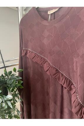Zora Butik Madonna Yaka Dantel Astarlı Elbise - KAHVE