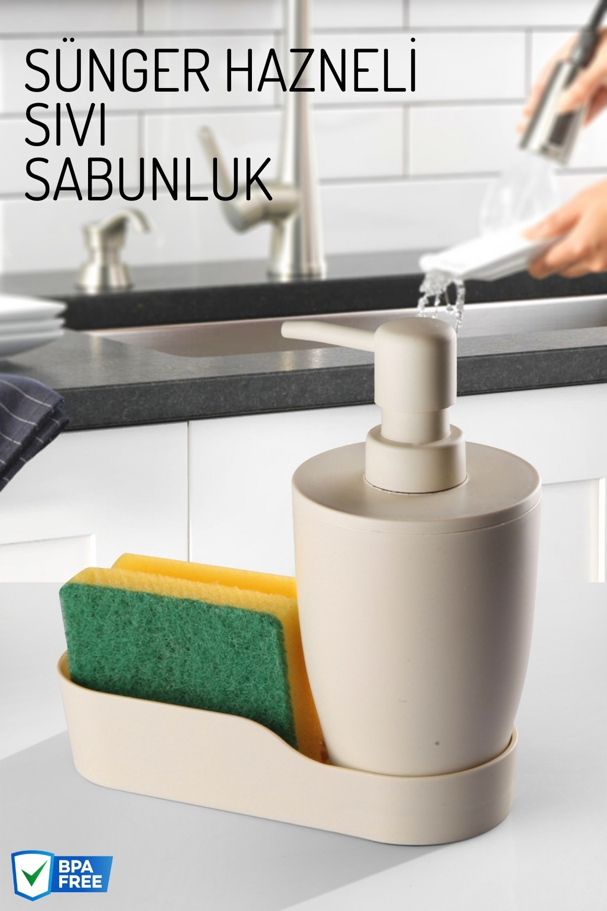 Nandy Home Sünger Hazneli Mutfak Sıvı Sabunluk ve Deterjanlık Düzenleyici