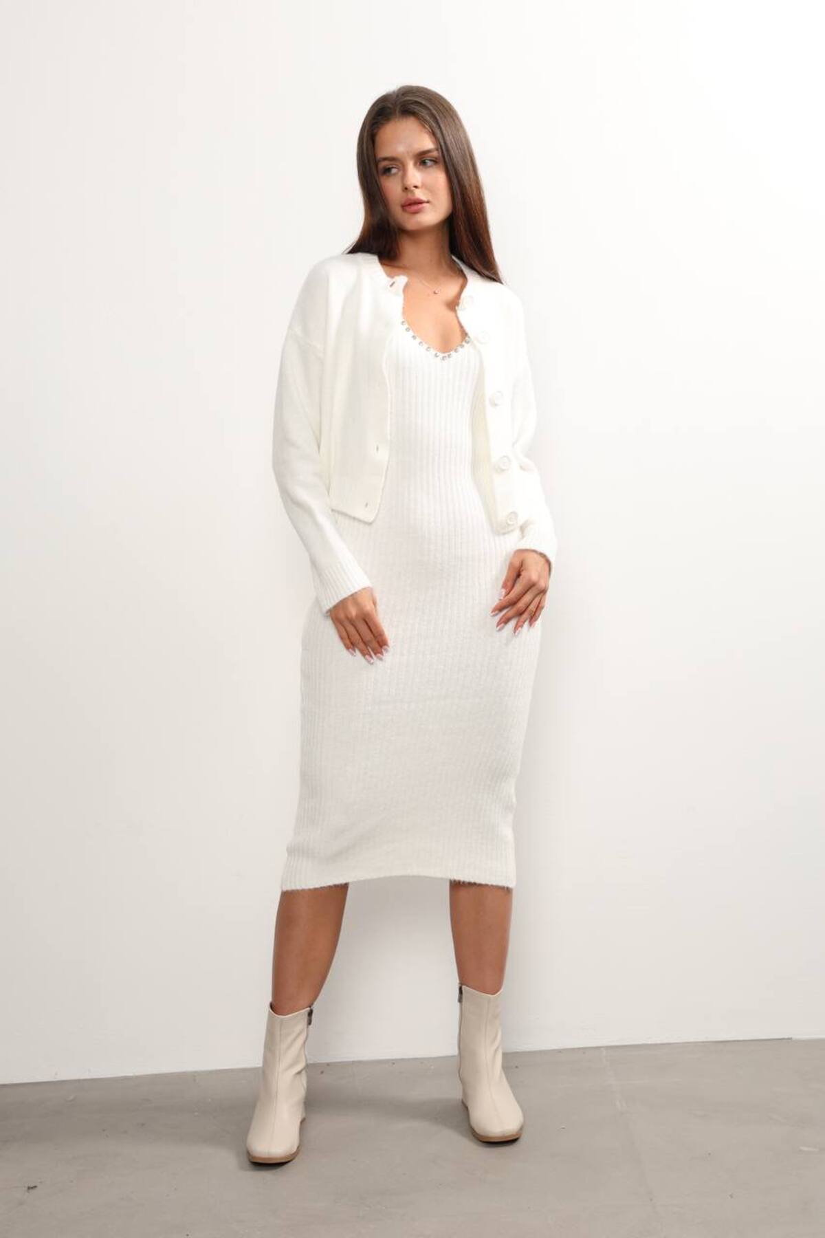 NARA TAŞ SÜSLEMELİ YÜN KARİŞİMLİ YUMUŞAK DOKU KADIN ELBISE-HIRKA TAKIM