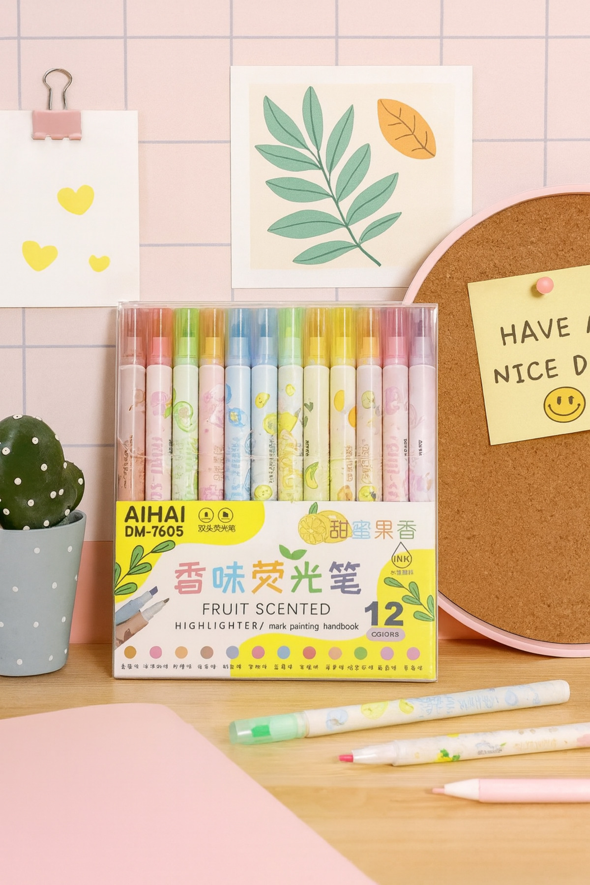NaSaDAN 12’li Meyve Kokulu Çift Uçlu Fosforlu Kalem Seti – Pastel Renkler