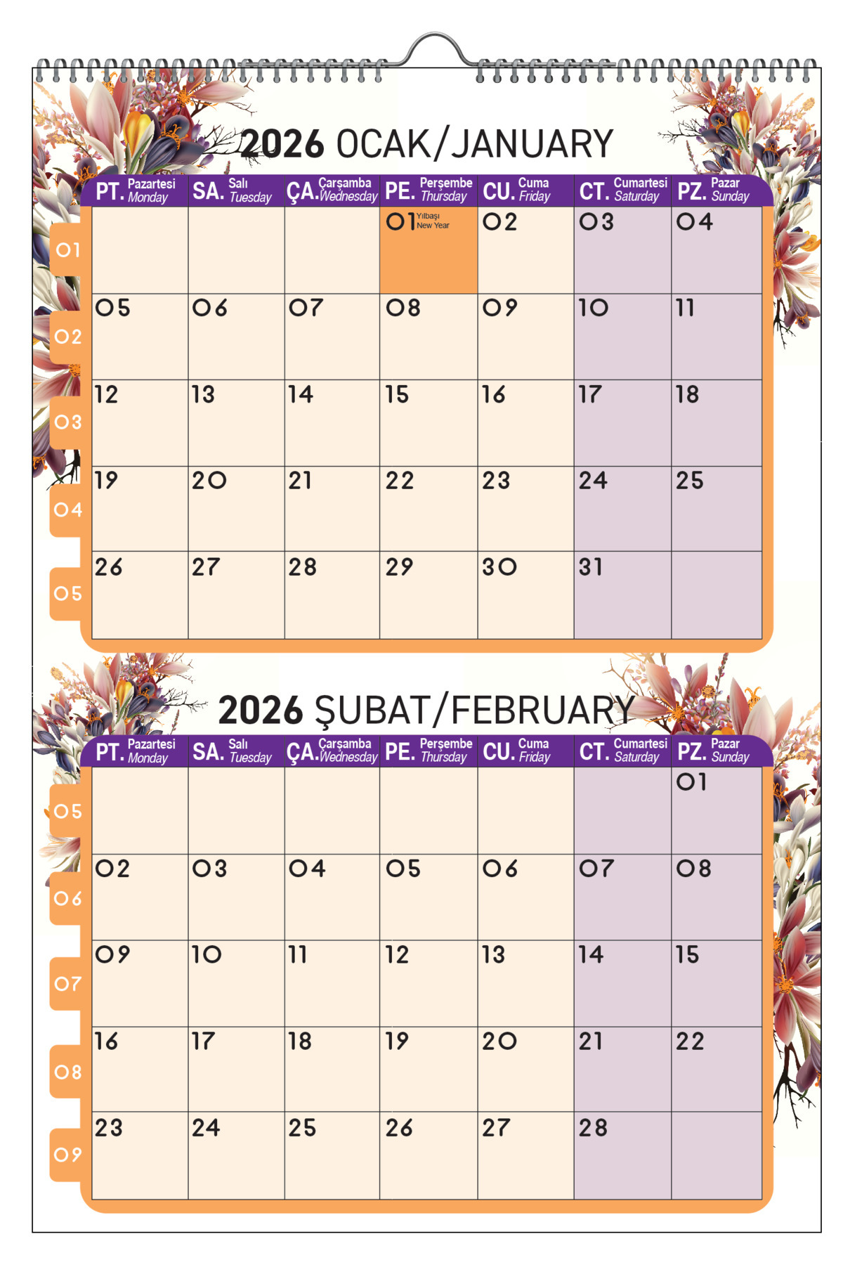 NATURELBASIM 2026 DUVAR PLANLAMA TAKVİMİ-6 SAYFA 33X48 Özellikleri