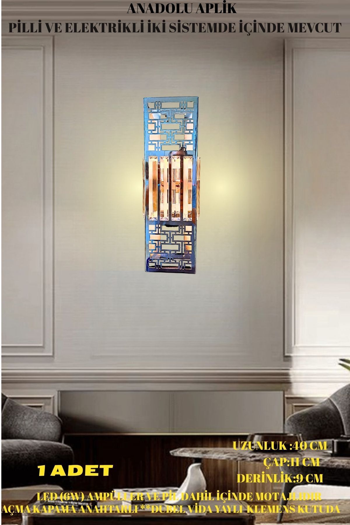 nazarium Anadolu Aplik Gümüş, Pilli Aplik, Anahtarlı, Pilli Elektrikli Ledli Duvar Aplik, Gece Lambası Özellikleri