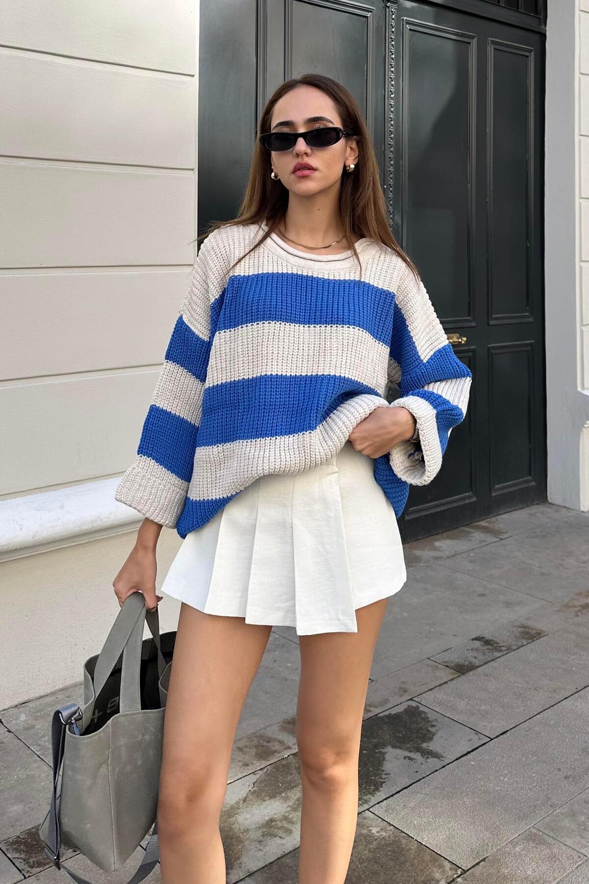 Nazliye Bej Mavi Salaş Örme Kazak