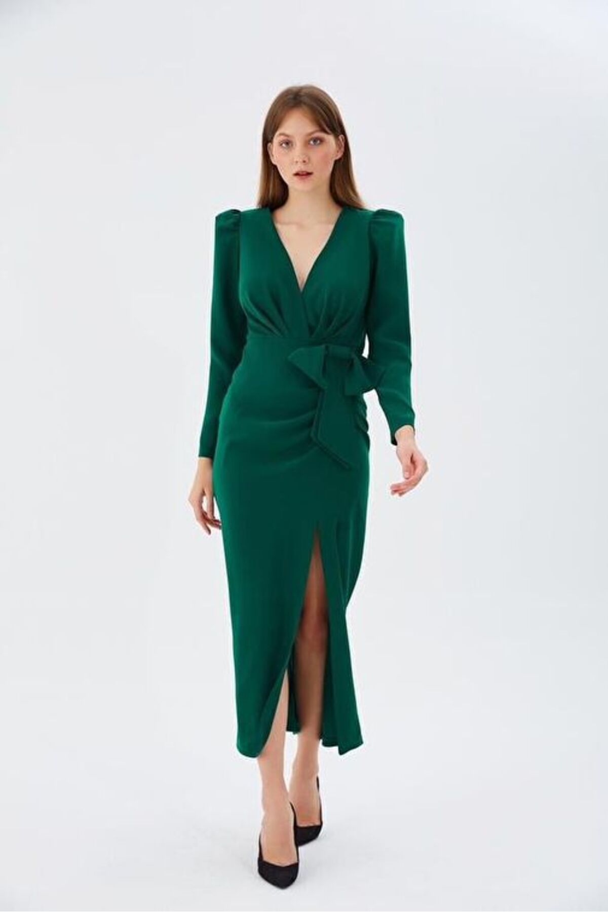 Nefeli Fiyonklu Elbise YEŞİL