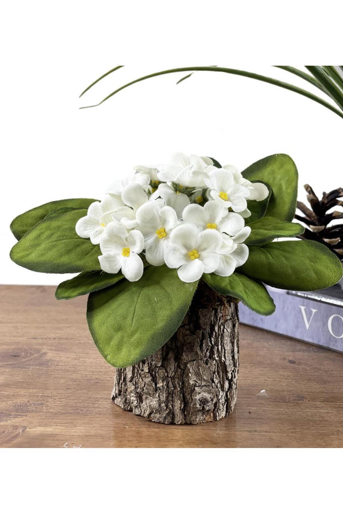 Nettenevime Yapay Çiçek Odun Saksıda Kadife Menekşe Gerçekçi Doku Beyaz
