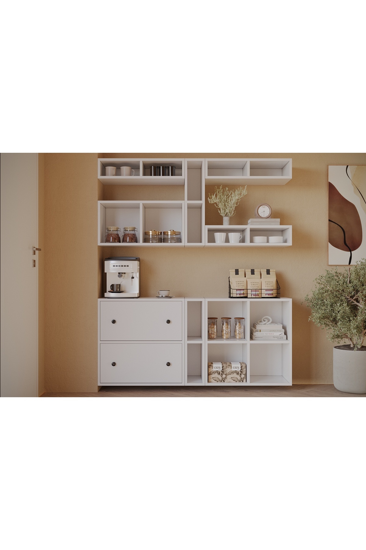 Nettrends 2 Kapaklı Duvar Raflı Çok Amaçlı Kahve Köşesi