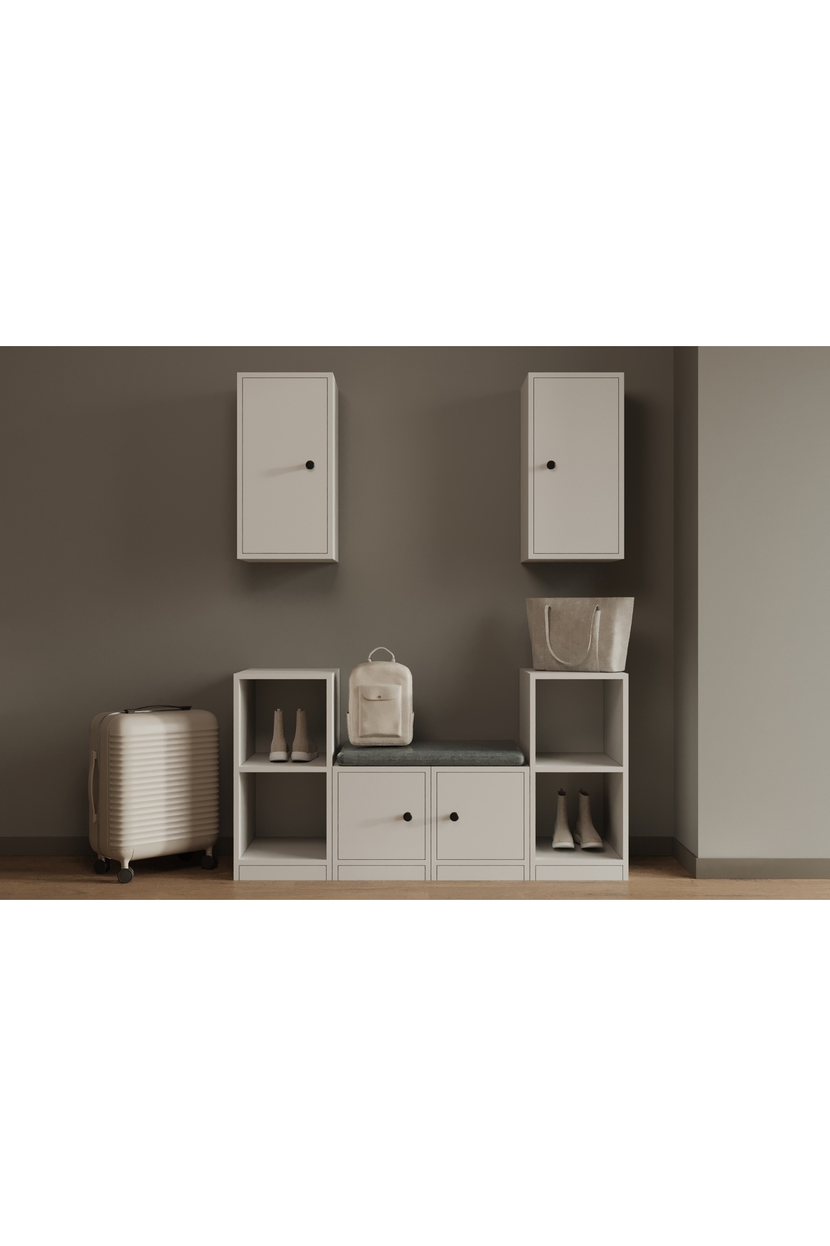 Nettrends 4 Kapaklı Ayakkabılık Bankosu Minimalist Puflu Duvar ve Zemin Antre Konsol Seti MST-AYK-1021
