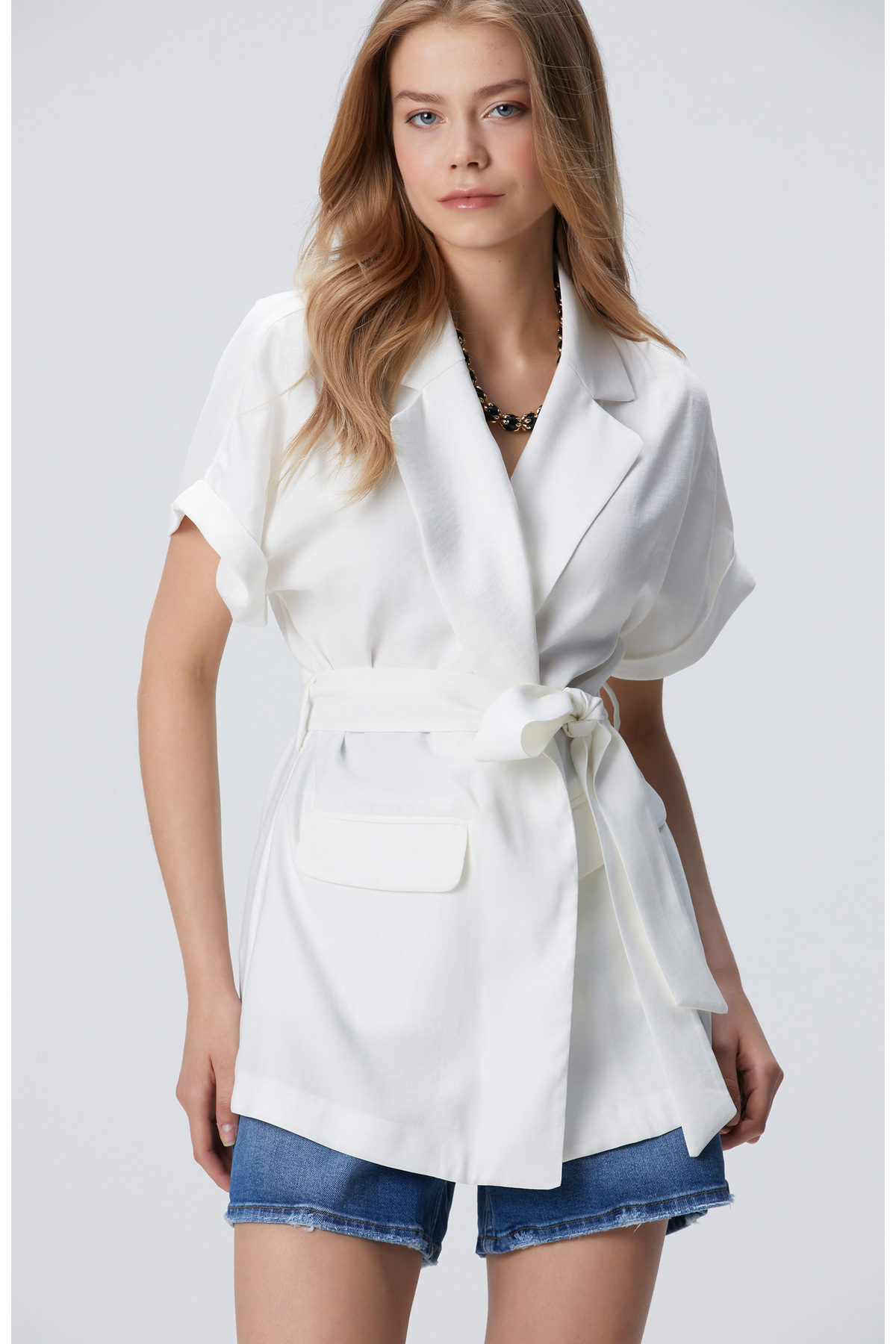 Network Beyaz Beli Kuşaklı Ceket Özellikleri