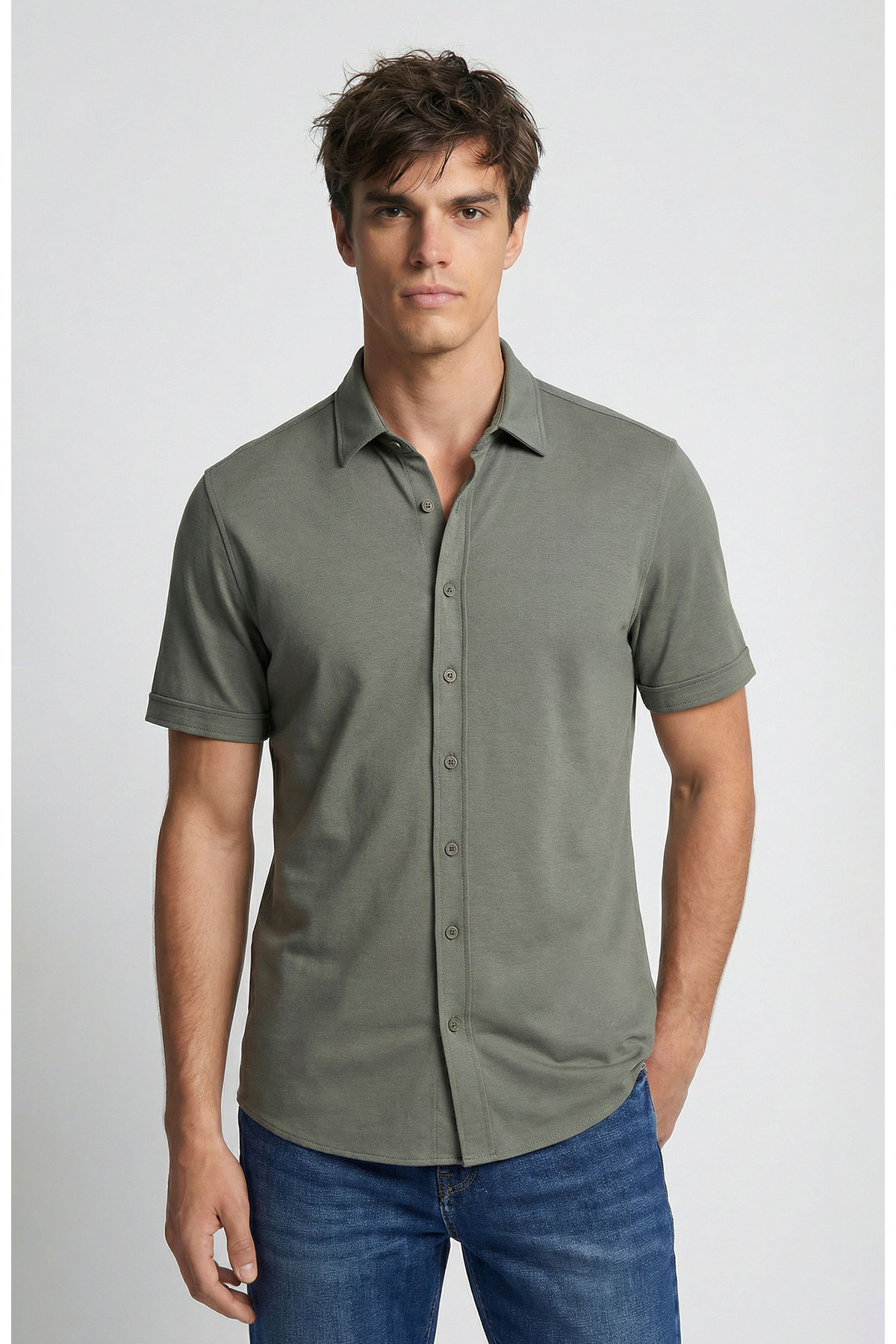 Network Haki Kısa Kollu Örme Gömlek