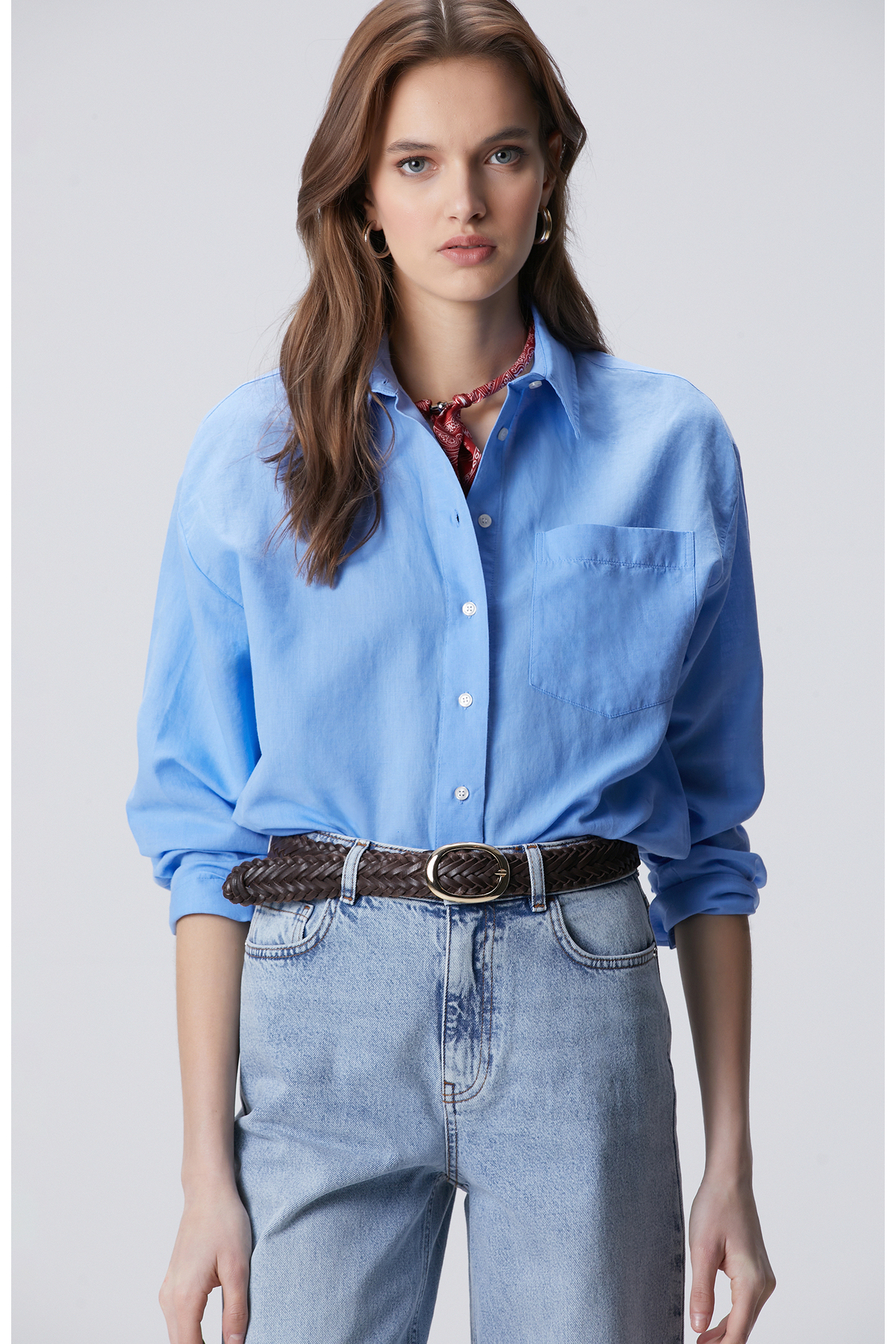 Network Mavi Cep Detaylı Basic Keten Karışımlı Gömlek Özellikleri