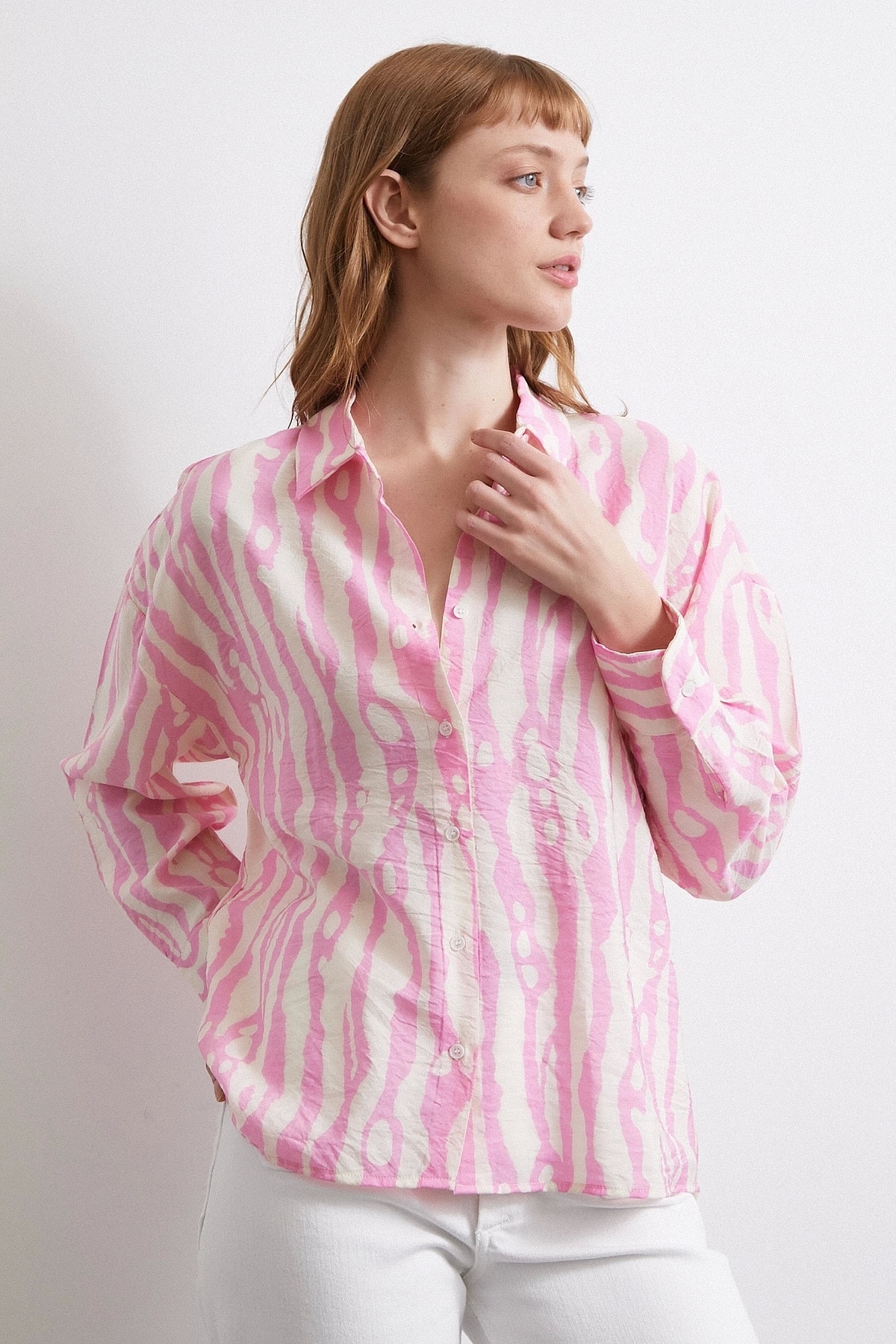 Never more Zebra Desen Modal Gömlek Pembe Özellikleri