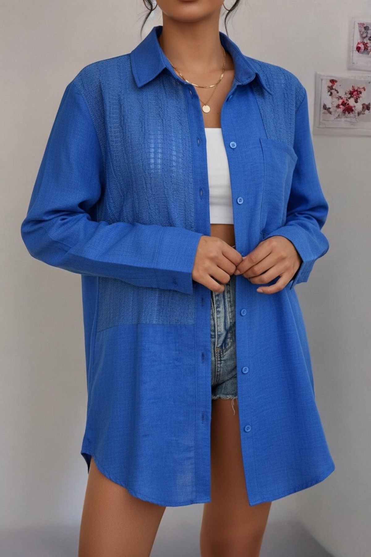 NEWCO Ajur Detaylı Uzun Boy Düğmeli Regular Basic Gömlek