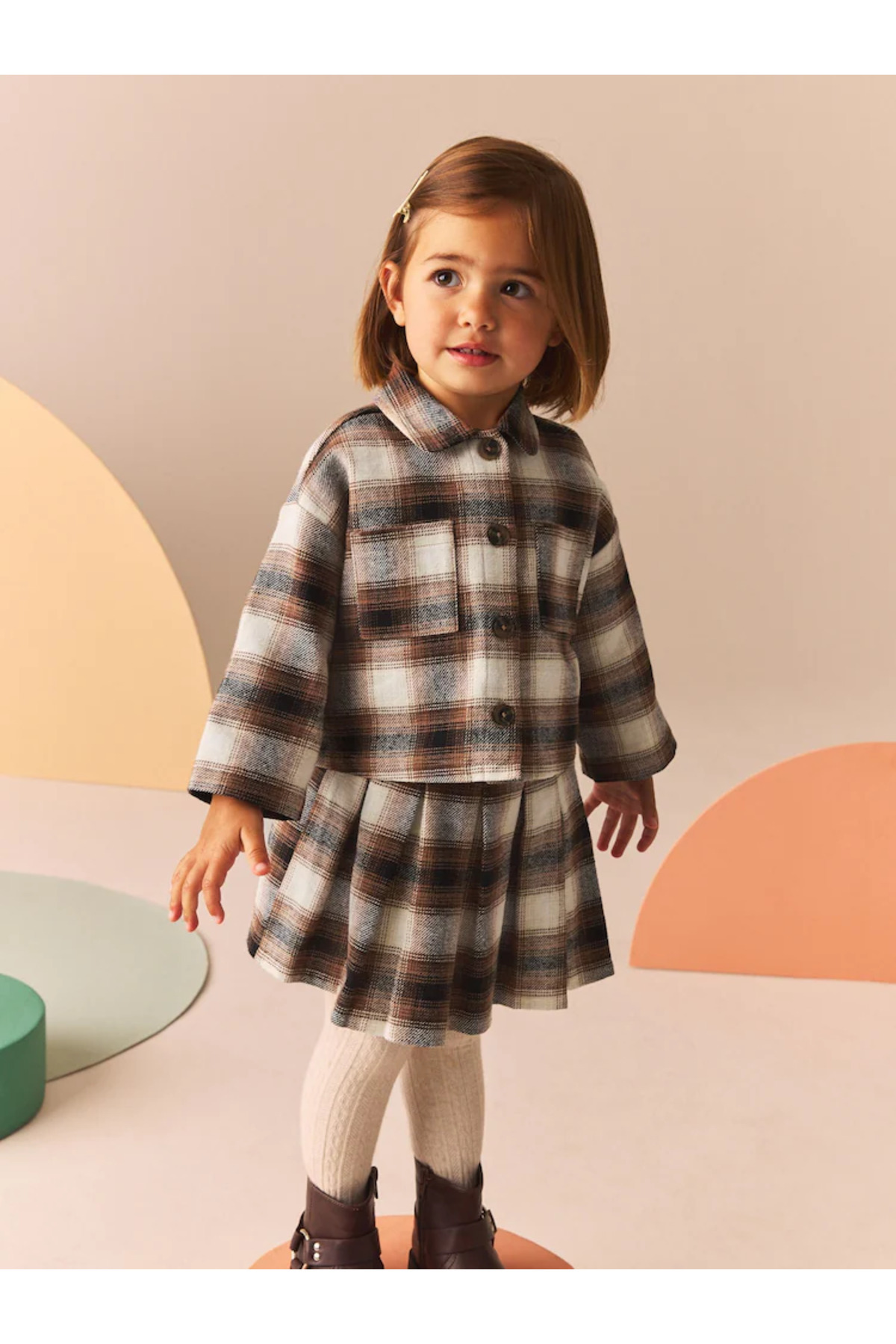 Next Baby Nötr - %100 Pamuklu Kareli Gömlek Ve Etek Elbise Seti Özellikleri