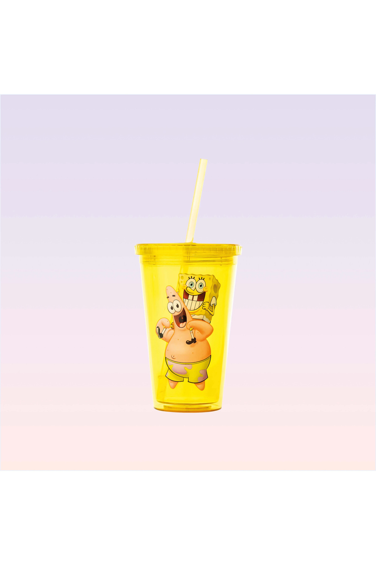 NİCKELODEON Sünger Bob Kare Pantolon Patrick Yıldız Figürlü Sarı Pipetli Bardak 470 ml