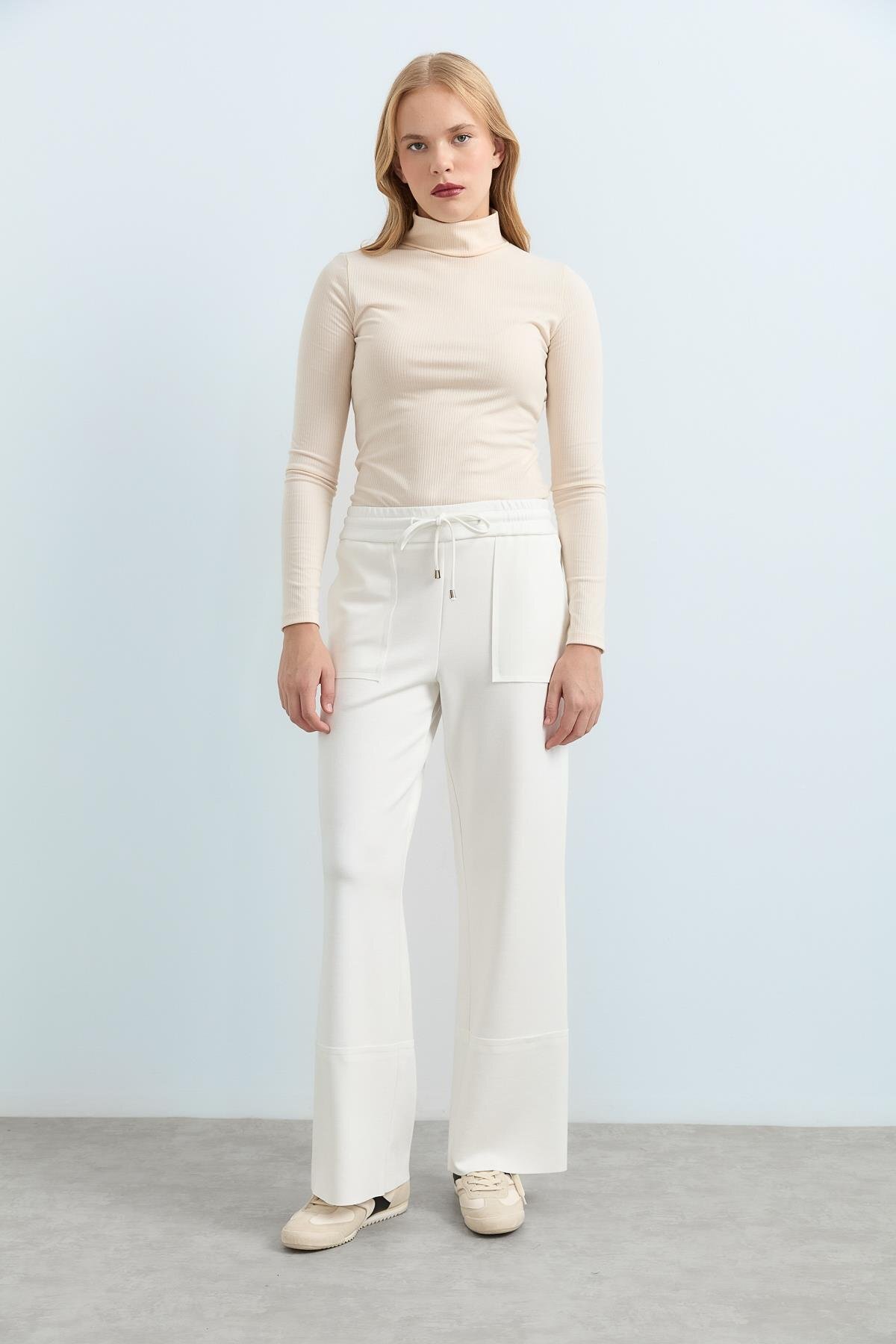 Nihan Beli Lastikli Örme Bol Pantolon Ekru Özellikleri
