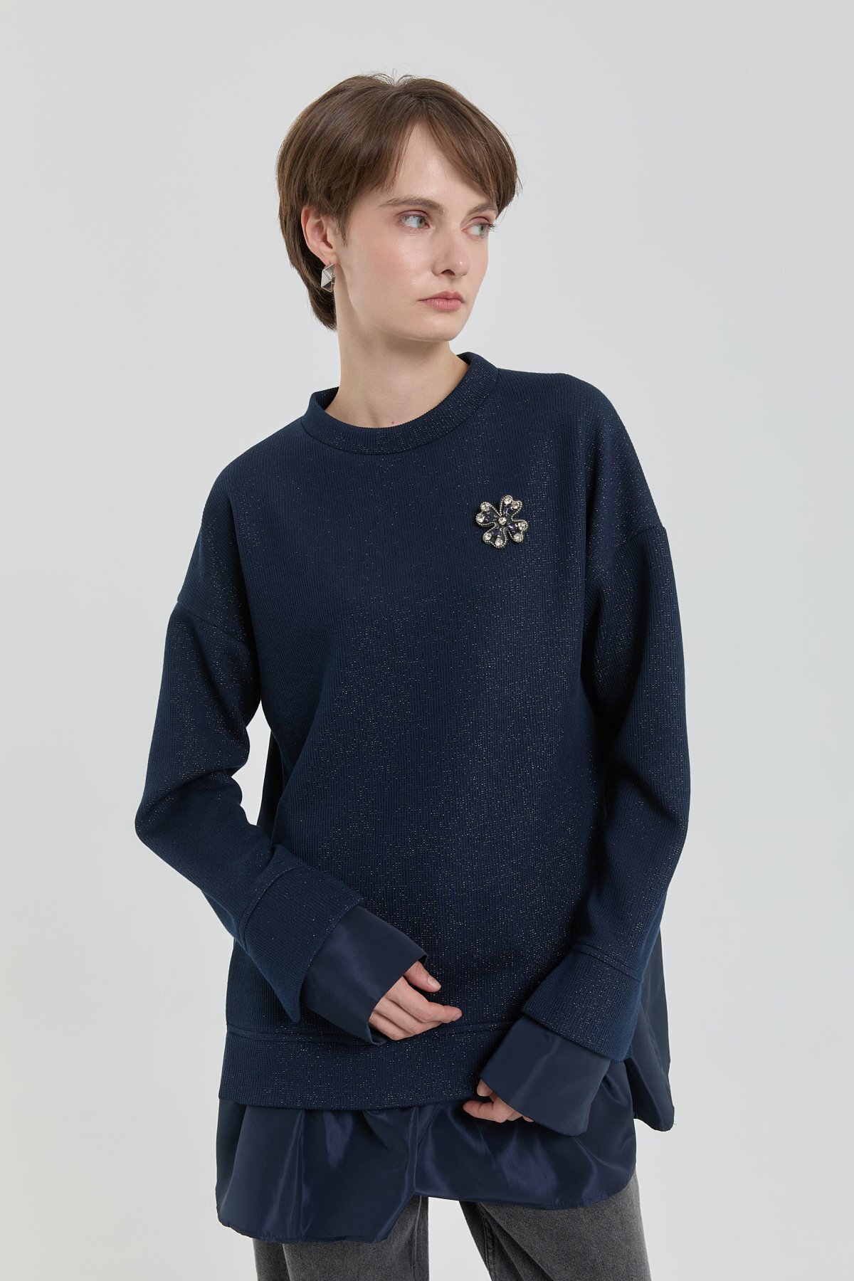 Nihan Broş Detaylı Simli Örme Tunik Lacivert Özellikleri