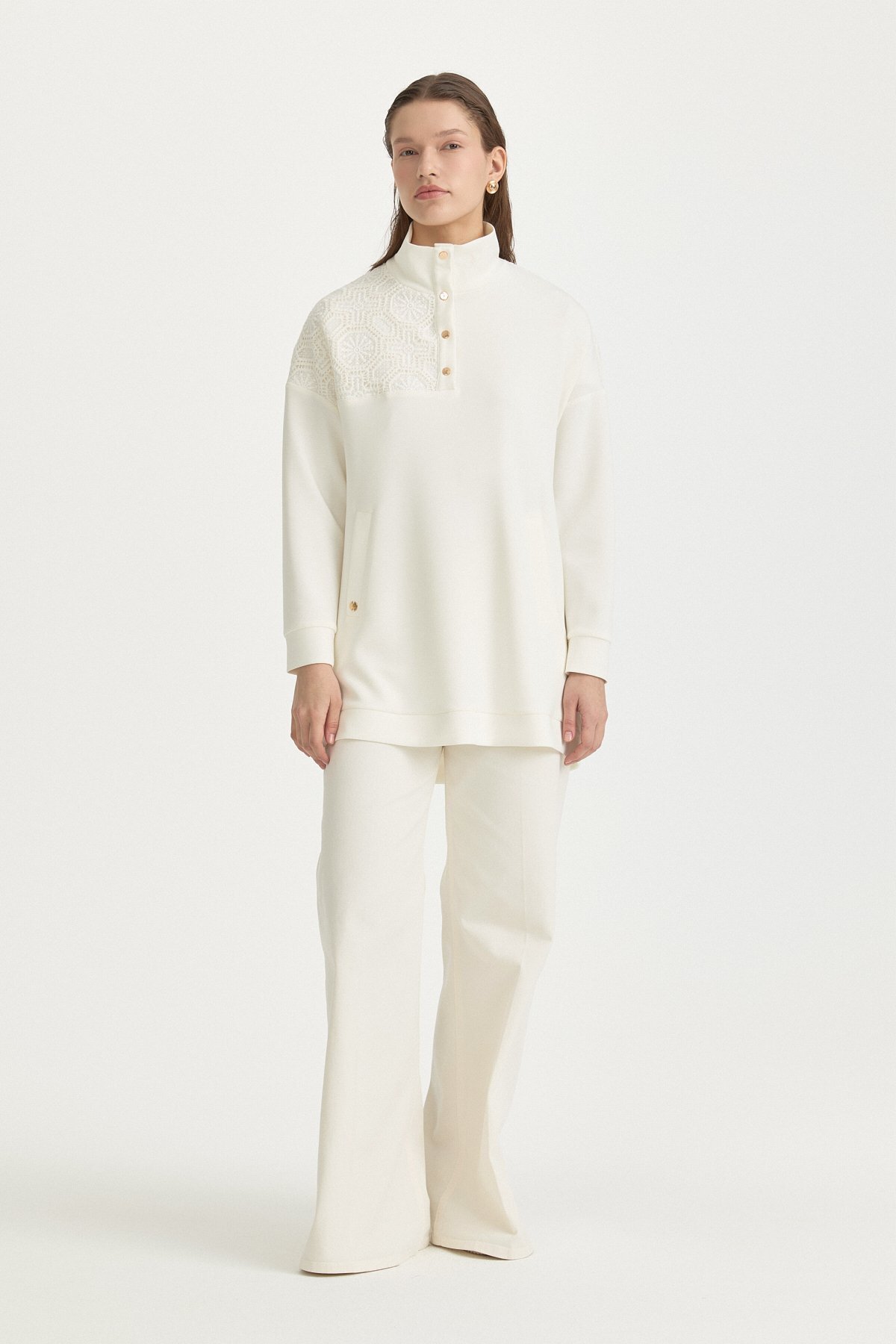 Nihan Dantel Detaylı Örme Tunik Ekru