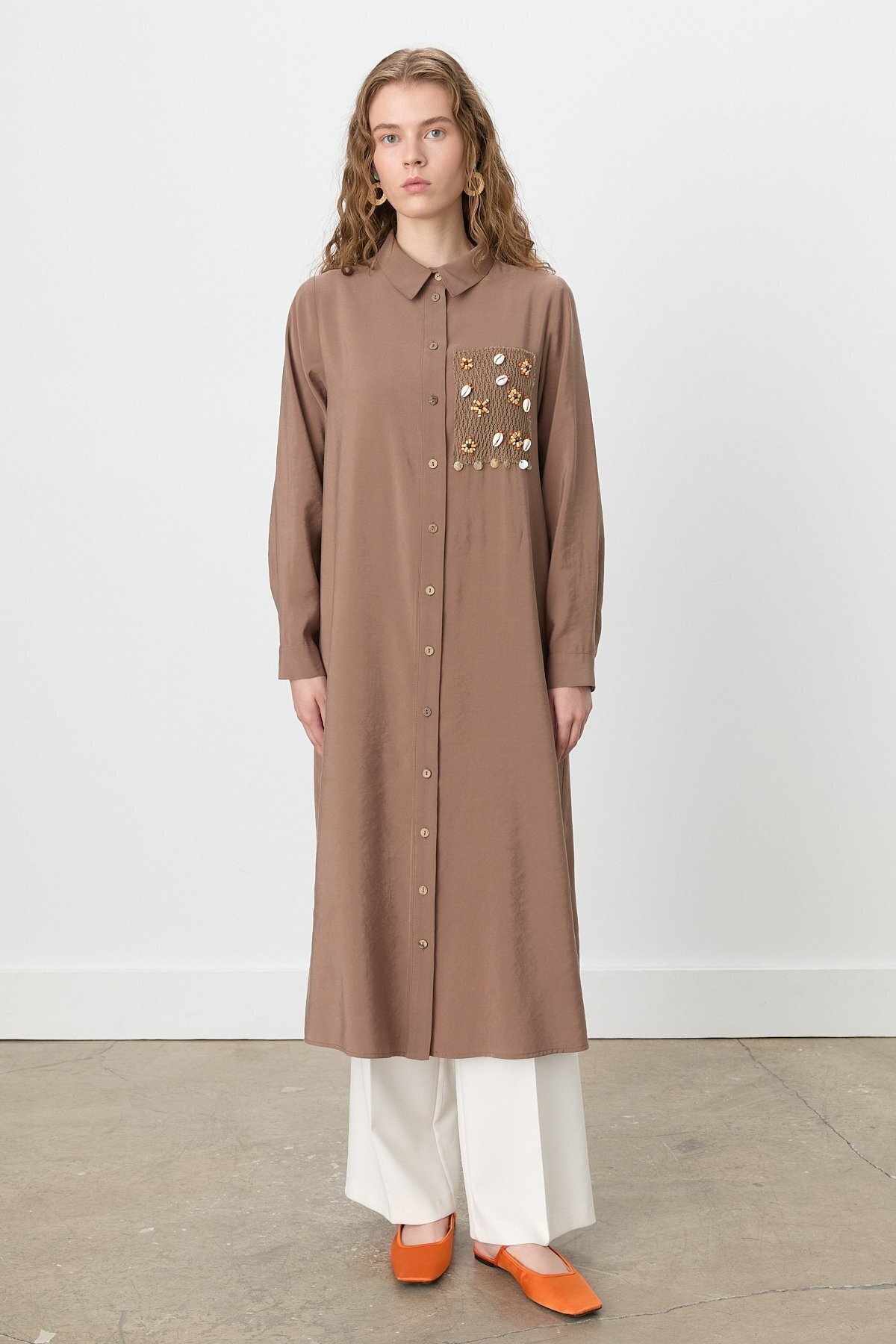 Nihan Gömlek Yaka Makromeli Modal Tunik Açık Kahve Özellikleri