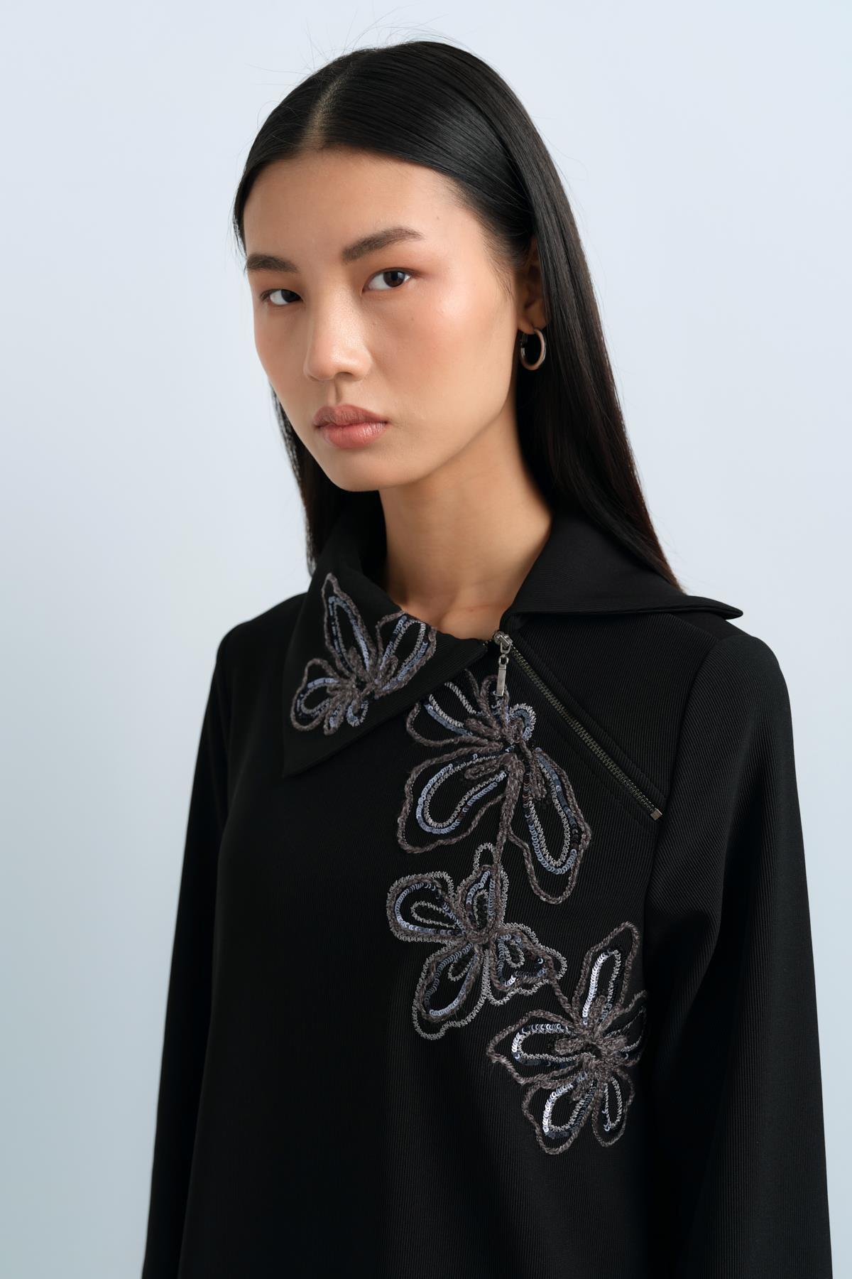 Nihan Nakış İşlemeli Örme Tunik Siyah Özellikleri