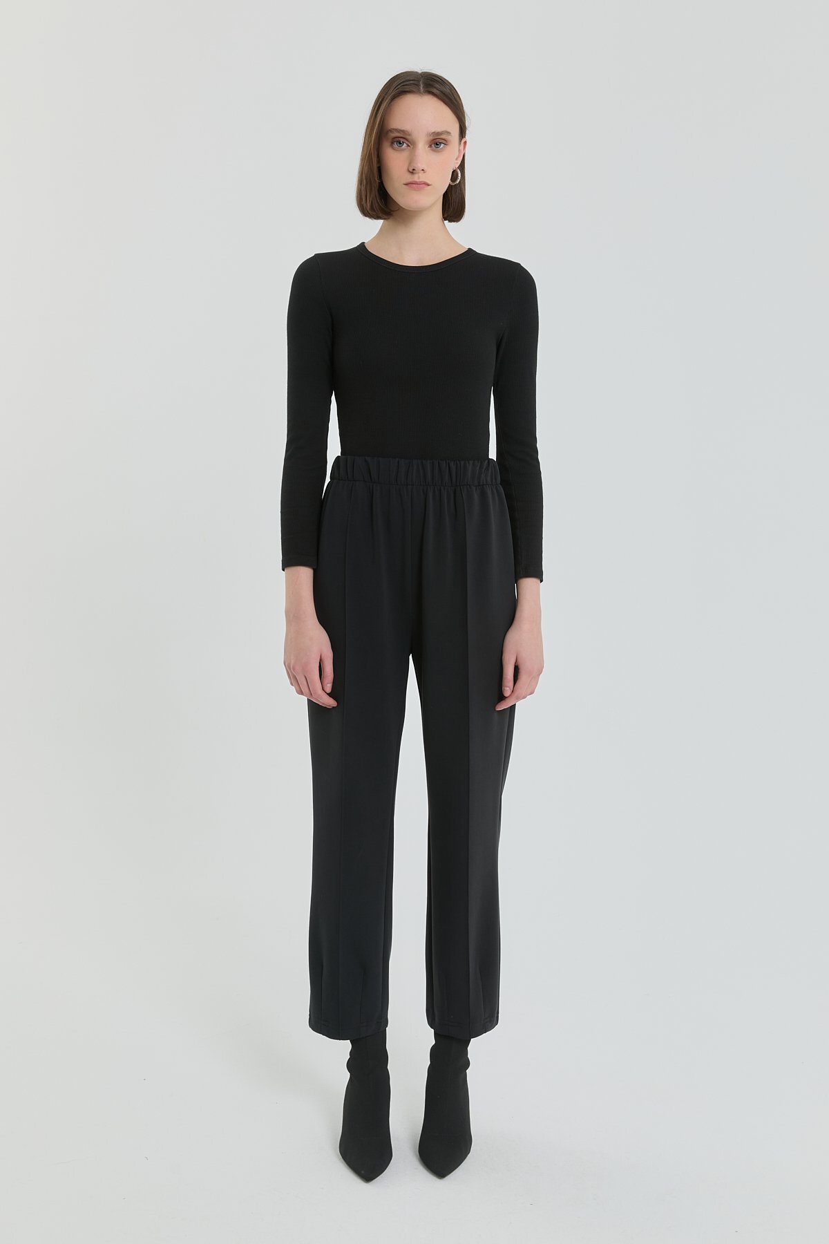 Nihan Paça Detaylı Beli Lastikli Örme Basic Pantolon Siyah Özellikleri