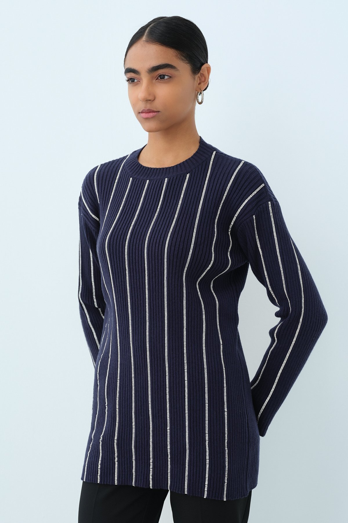 Nihan Taş Şeritli Triko Tunik Lacivert Özellikleri