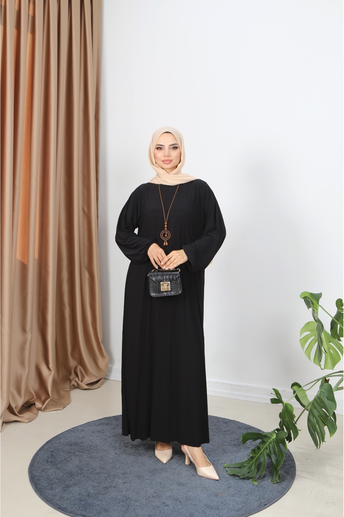 NİSUM MODA KOLYELİ PİLİSELİ SANDY ELBİSE