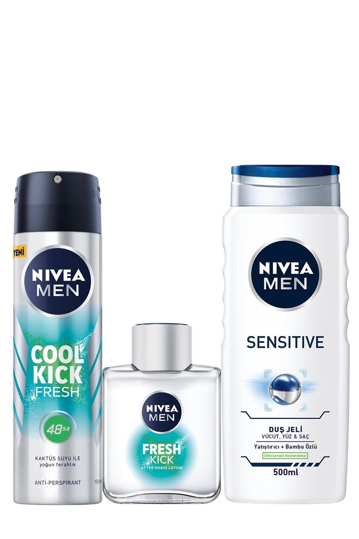 NIVEA Cool Kick Fresh Deodorant 150 Ml+cool K Fresh Aftershave Losyon 100ml+sensitive Duş Jeli 500ml
