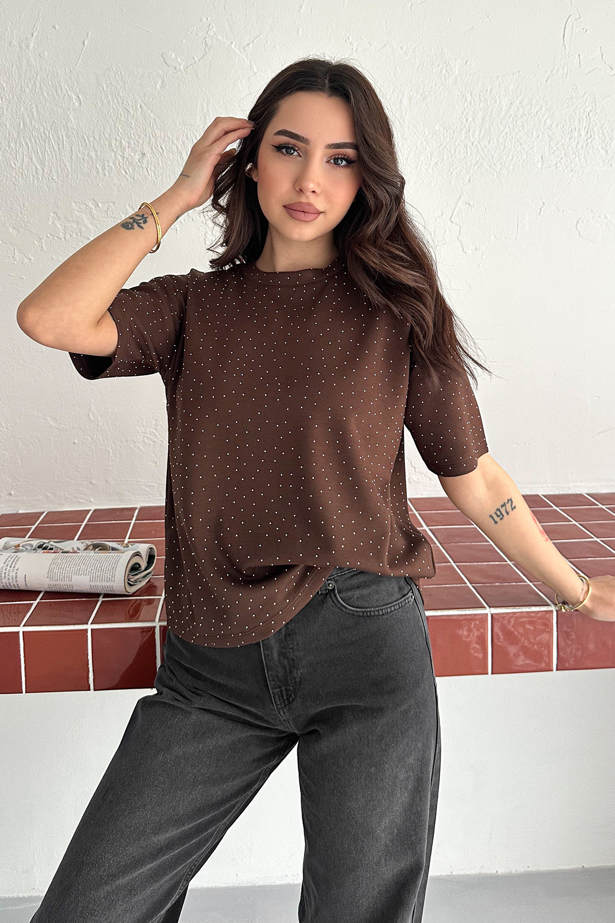 Noa Noa Taş Detaylı Basic Tişört – Minimal Dot