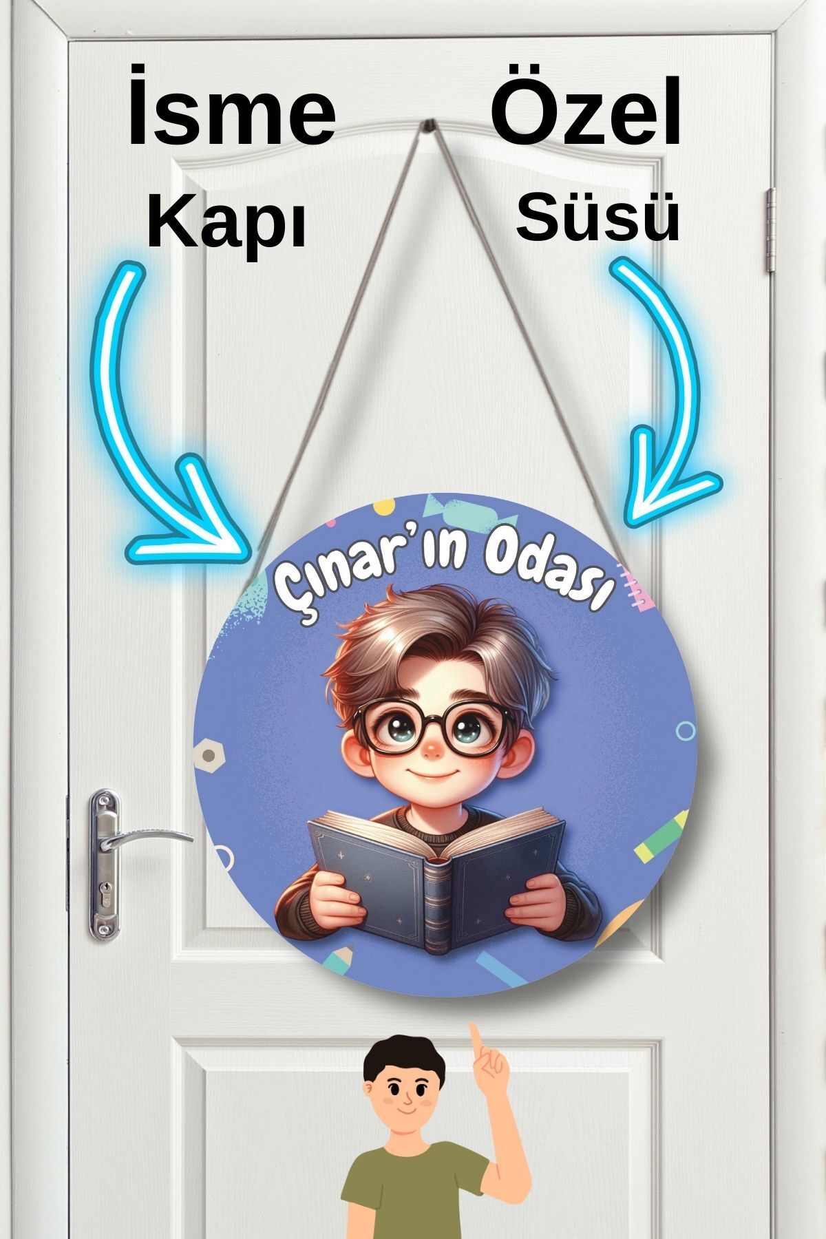Nod Kişiye Özel Erkek Çocuk Kapı Süsü – İsim Yazılabilir MDF Yuvarlak İpli Oda Dekoru