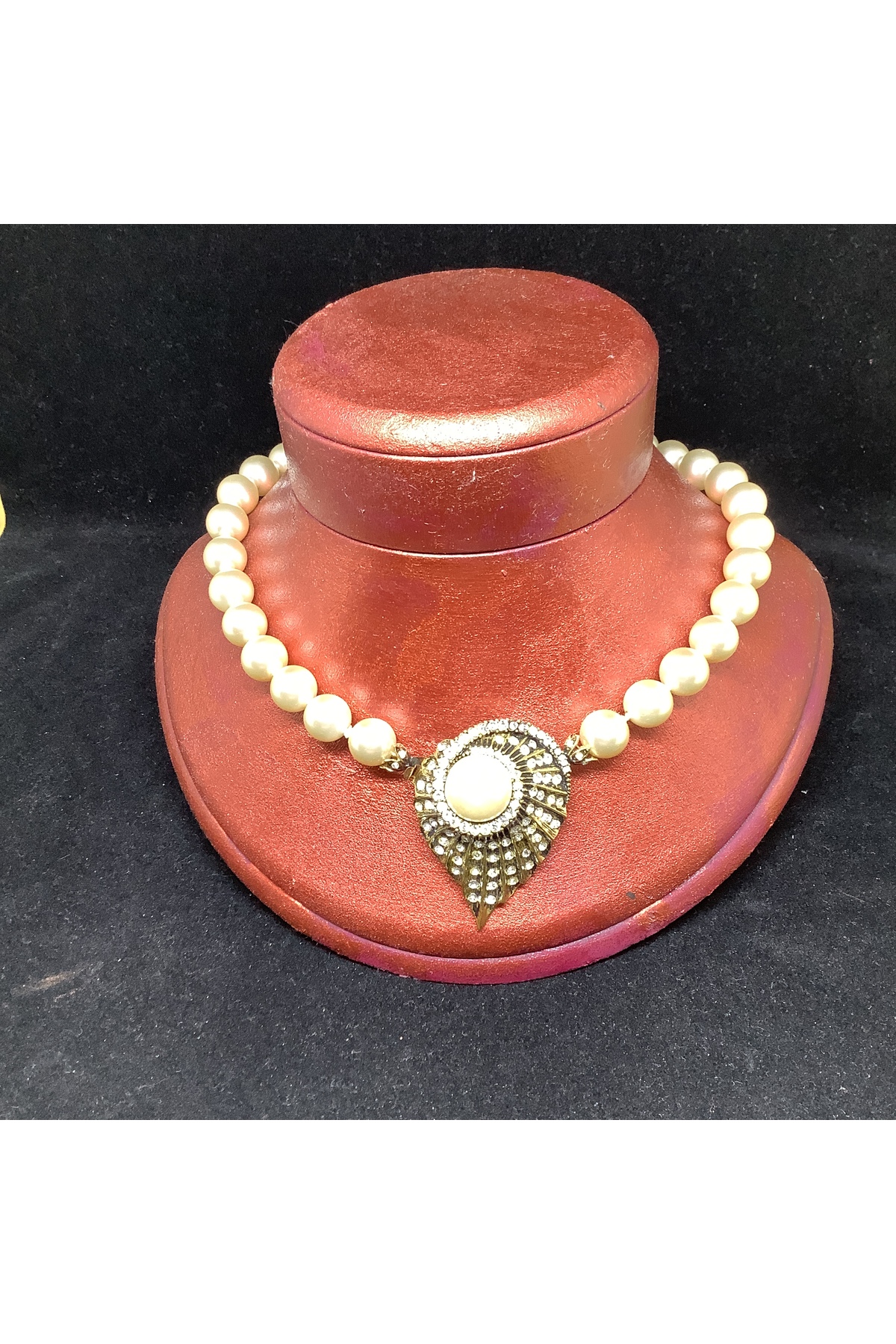 Mayorka incili antik elmas görünümlü onden kilit 24 cm kolye