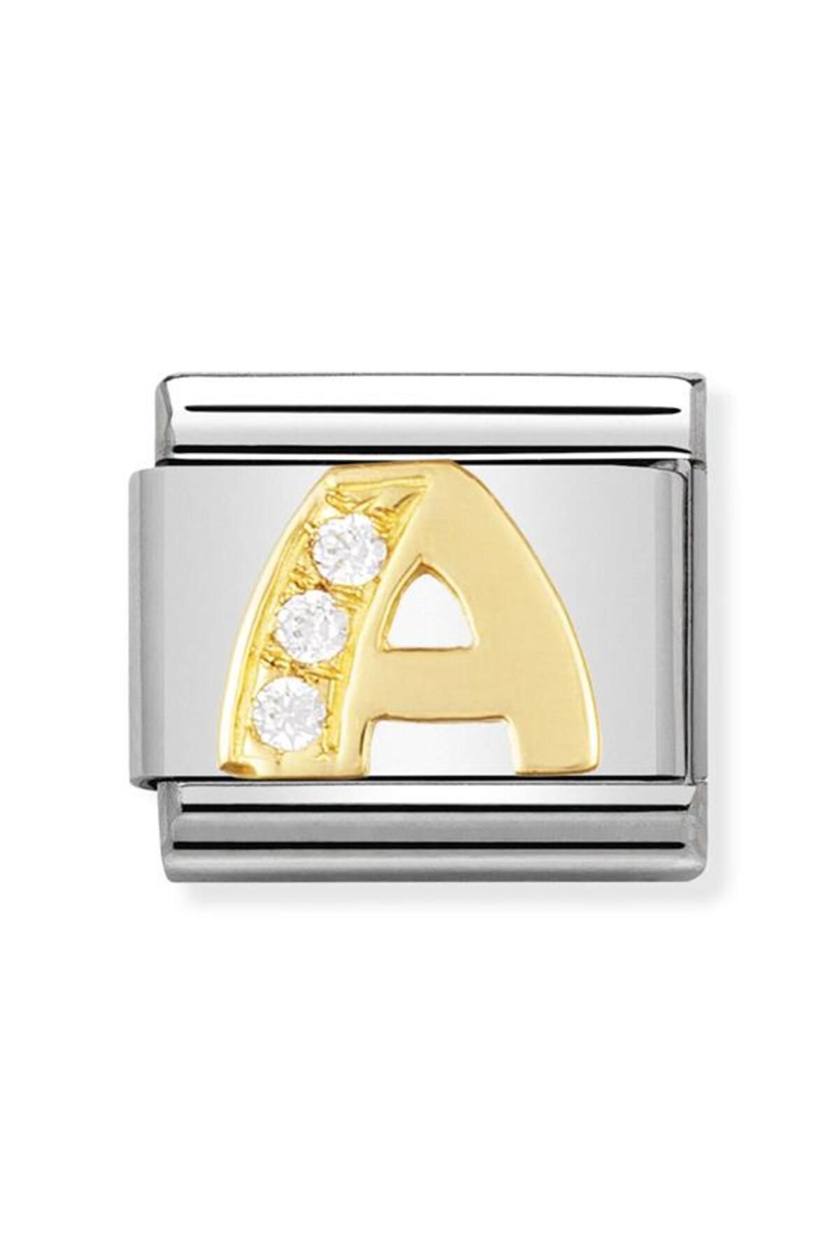 NOMİNATİON Composable Classic Letters In Stainless Steel With 18k Gold And Cubic Zirconia (01_a)