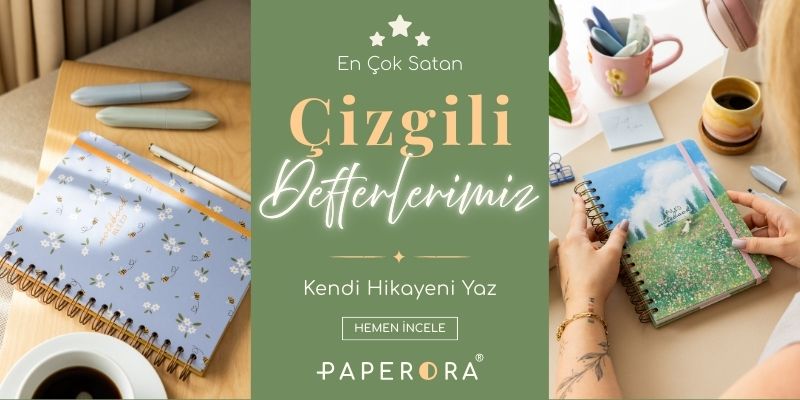 PAPERORAResmi satıcı rozeti A5 Spiralli Sert Kapak Lastikli Çizgili Tarihsiz Not Defteri Arı